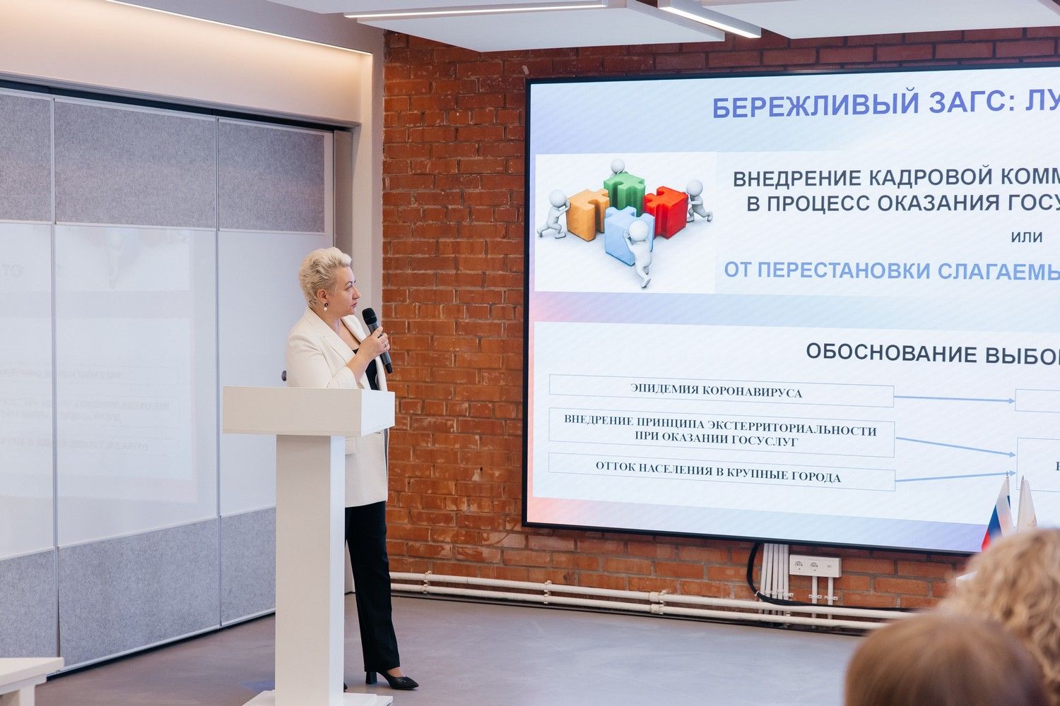 Ольга Краснова рассказала, что с 2009 года Главное управление ЗАГС Нижегородской области реализовало больше 40 проектов, направленных на повышение качества и доступности государственных услуг населению, в 2026 году нижегородское управление успешно подтвердило статус федерального образца эффективного управления.