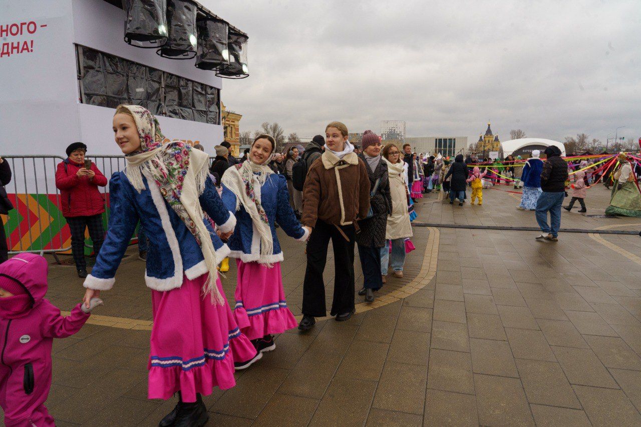 Открыл праздничную программу Заслуженный коллектив народного творчества РФ, фольклорный ансамбль «Прялица». Одним из самых зрелищных моментов стала акция «Хоровод». За руки взялись артисты в национальных костюмах, жители Нижегородской области, пришедшие на праздник целыми семьями, и гости города.