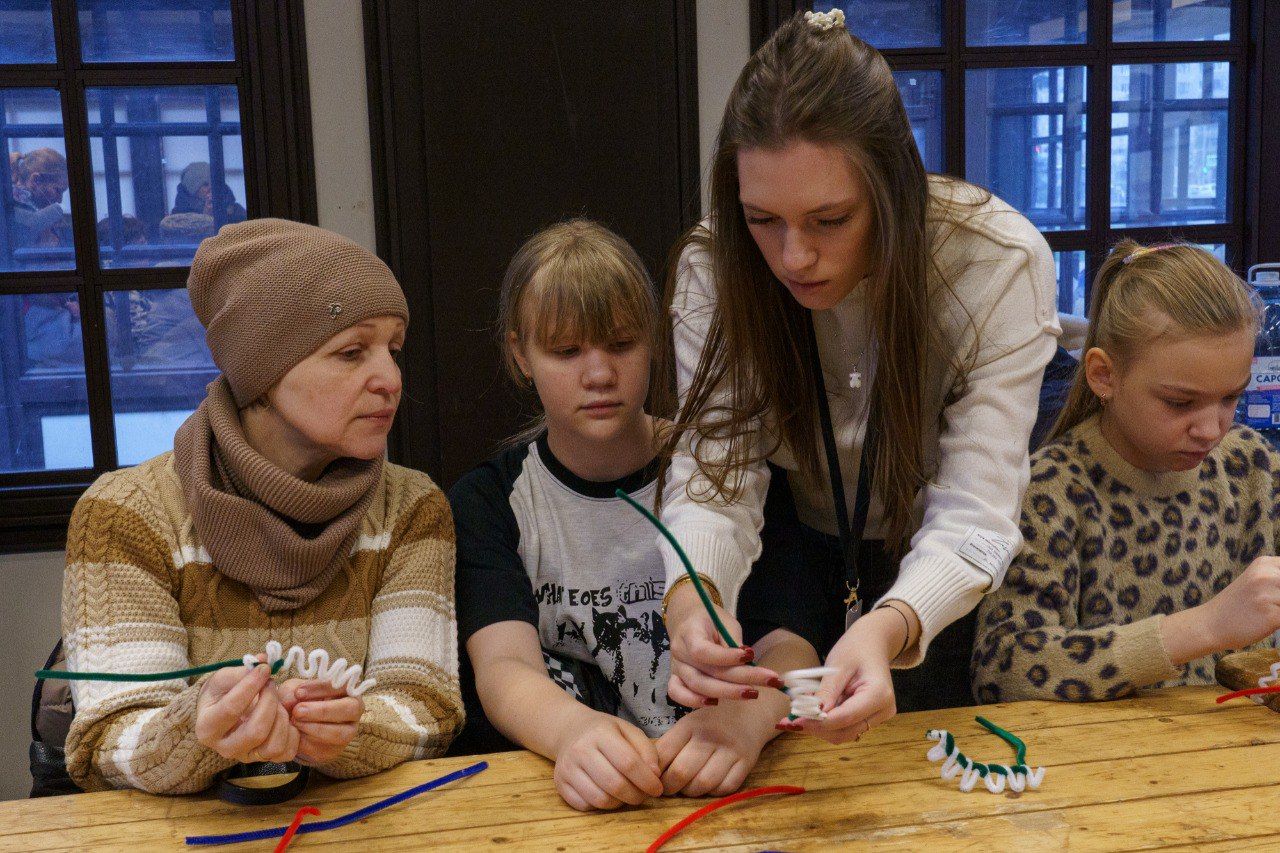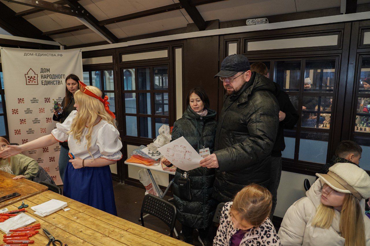 Дом народного единства подготовил программу с мастер-классами для семей с детьми. В течение всего дня на площадку приходили взрослые и дети, чтобы научиться своими руками создавать украшения и цветы.