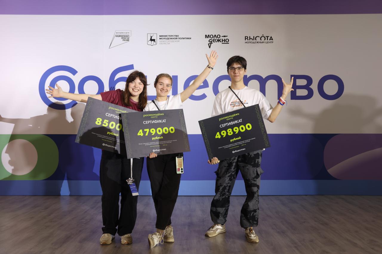 Победителями конкурса стали 6 нижегородских студентов. В общей сложности они получили грантовую поддержку в размере более 2,8 млн рублей на реализацию своих проектов: Елизавета Мишенина — НТТ-подкаст: Новости Технологий и Творчества (112,5 тыс. рублей), Карина Суконкина — программа адаптации «Декада первокурсника» (181 990 рублей), Арина Донец — программа развития студенческого туризма «Компас» (479 тыс. рублей), Тимофей Важнёв — школа цифрового иммунитета «ИИ+Разум» (498 900 рублей), Серафим Мучкин — обучающая смена для лидеров и руководителей молодежных сообществ «Никаких НО!» (760 тыс. рублей), Полина Гудиленкова — молодёжный клуб любителей чтения «Город Н» (850 тыс. рублей).