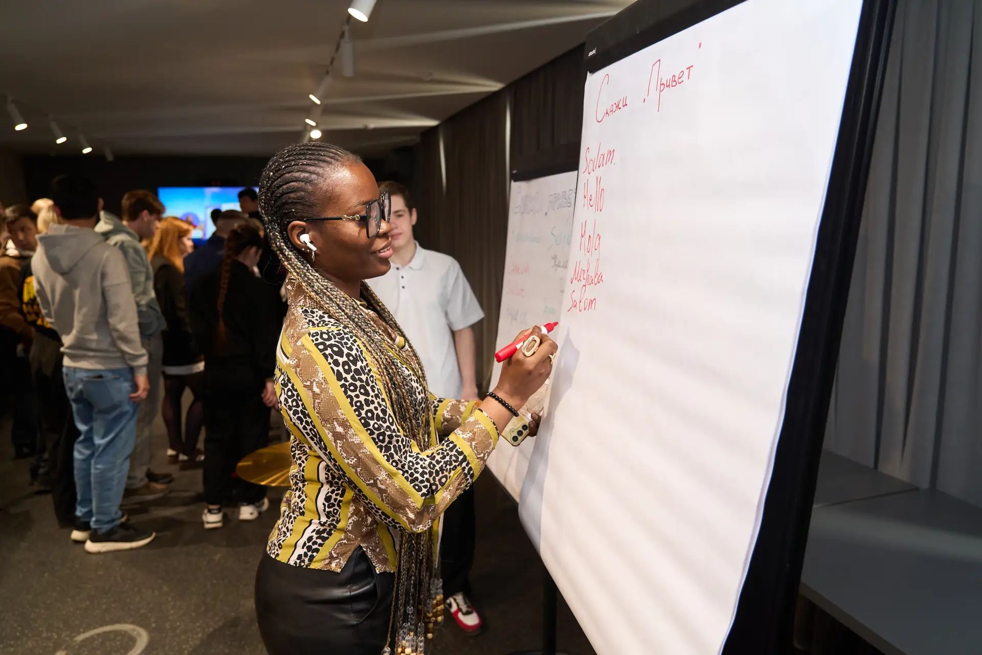 Студенческие команды продемонстрировали в финале все, чему научились. Молодые люди вели переговоры и выходили из конфликтных ситуаций в речевых поединках, искали главные нижегородские достопримечательности в виртуальной реальности, писали приветствия на родном языке, запоминали флаги российских регионов, исполняли русские и мордовские танцы, с закрытыми глазами определяли на вкус национальные блюда и напитки — блины, чак-чак, элеш, квас и айран.