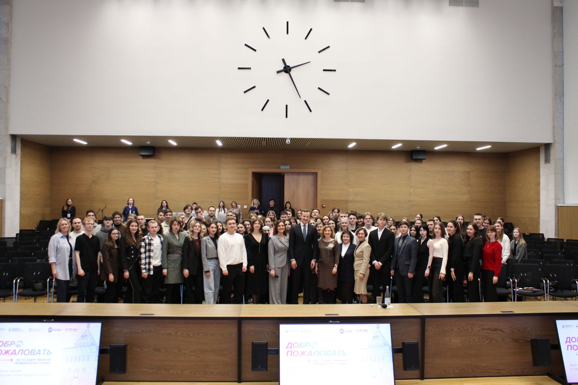 В рамках цикла встреч студентам рассказали о возможностях развития молодёжи на государственной службе, в том числе о программах стажировок и практик в исполнительных органах региона. В том числе были представлены инструменты профориентации молодёжного центра карьеры Нижегородской области «КУПНО.Старт».