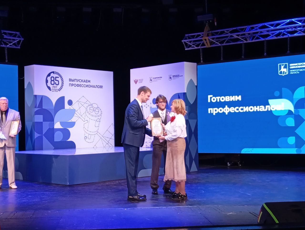За многолетний стаж работы и ответственный подход к работе почетными грамотами Министерства просвещения РФ награждено шесть работников сферы СПО, а Почетными грамотами губернатора Нижегородской области отмечены сотрудники Дзержинского химического техникума имени Красной Армии и Нижегородского областного училища олимпийского резерва имени В. С. Тишина.