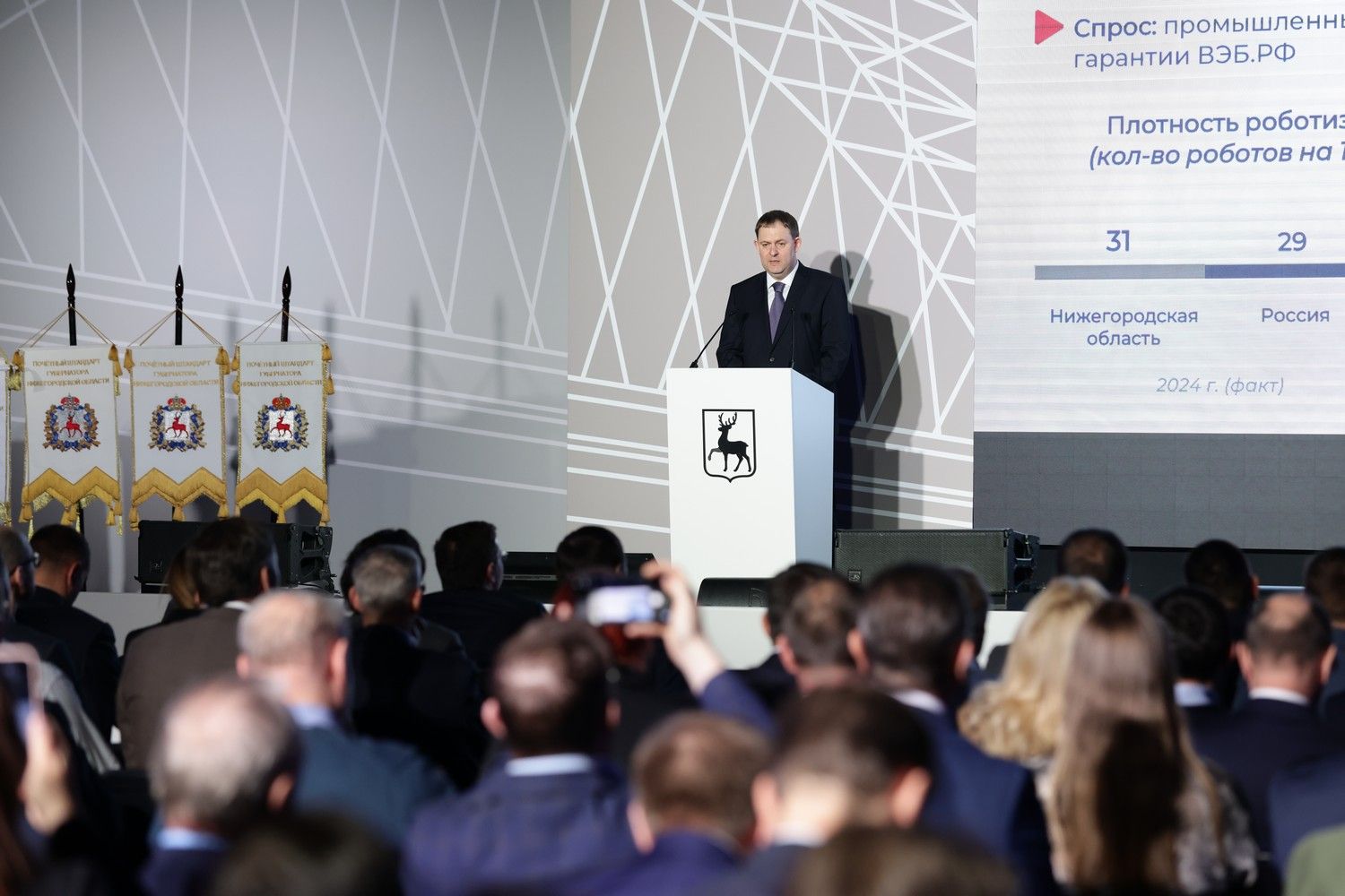 «Данные статистики говорят, что по сравнению с 2024 годом прибыль крупных и средних предприятий обрабатывающих отраслей региона сократилась на 16,2 процента. Инвестиции в производство уменьшились на 7,2 процента. Несмотря на все сложности, обработка показала положительную динамику. Индекс промышленного производства составил 100,9 процента, в обработке — 101,1 процента. Объем промышленного производства вырос почти на 6 процентов и вплотную приблизился к 2,5 триллиона рублей, в том числе по обрабатывающей промышленности 2,3 триллиона рублей. По этому показателю Нижегородская область стабильно занимает восьмое место в России и второе место в Приволжском федеральном округе», — сказал Глеб Никитин.