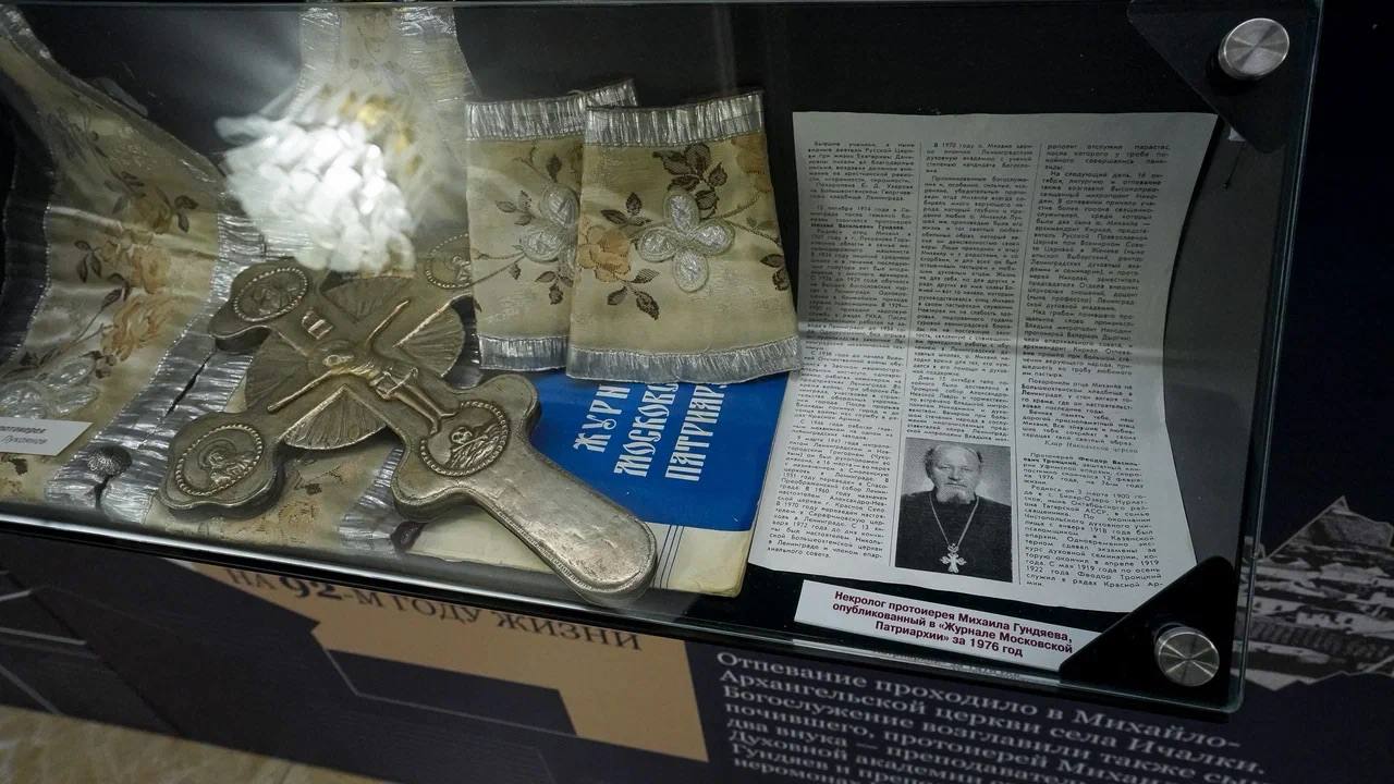 Выставка состоит из двух частей. Первая включает экспонаты из арзамасского Музея русского патриаршества и дома-музея «Исповедник веры Христовой — иерей Василий Гундяев» города Лукоянова и посвящена роду Гундяевых — предков патриарха Кирилла, живших в Нижегородской области. Дед, отец, а также брат предстоятеля Русской православной церкви были священнослужителями. Информационные стенды экспозиции, посвященные роду Гундяевых, включают биографические материалы, фоторепродукции документов, личные вещи, свидетельства о пребывании в ссылках и образцы церковного облачения. В экспозиции есть фотографии деда патриарха Кирилла Василия Степановича и отца Михаила Васильевича.