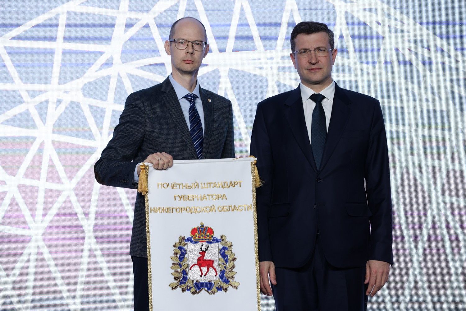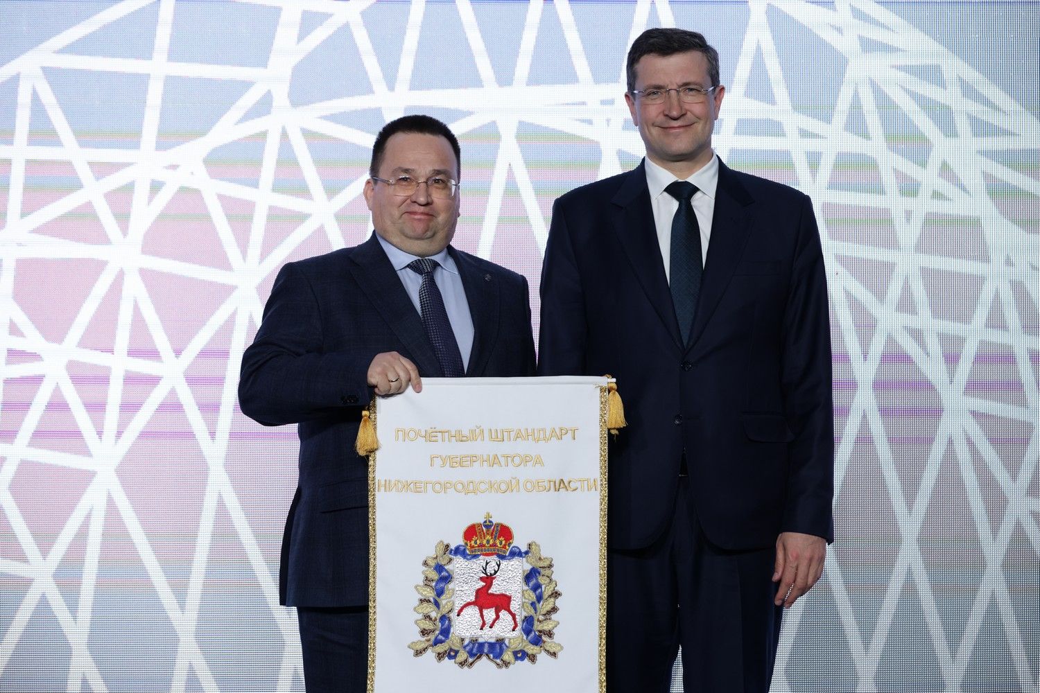 Глава Нижегородской области, секретарь нижегородского регионального отделения партии «Единая Россия» Глеб Никитин вручил Почетные штандарты губернатора предприятиям, показавшим наилучшие результаты по итогам работы в 2025 году.