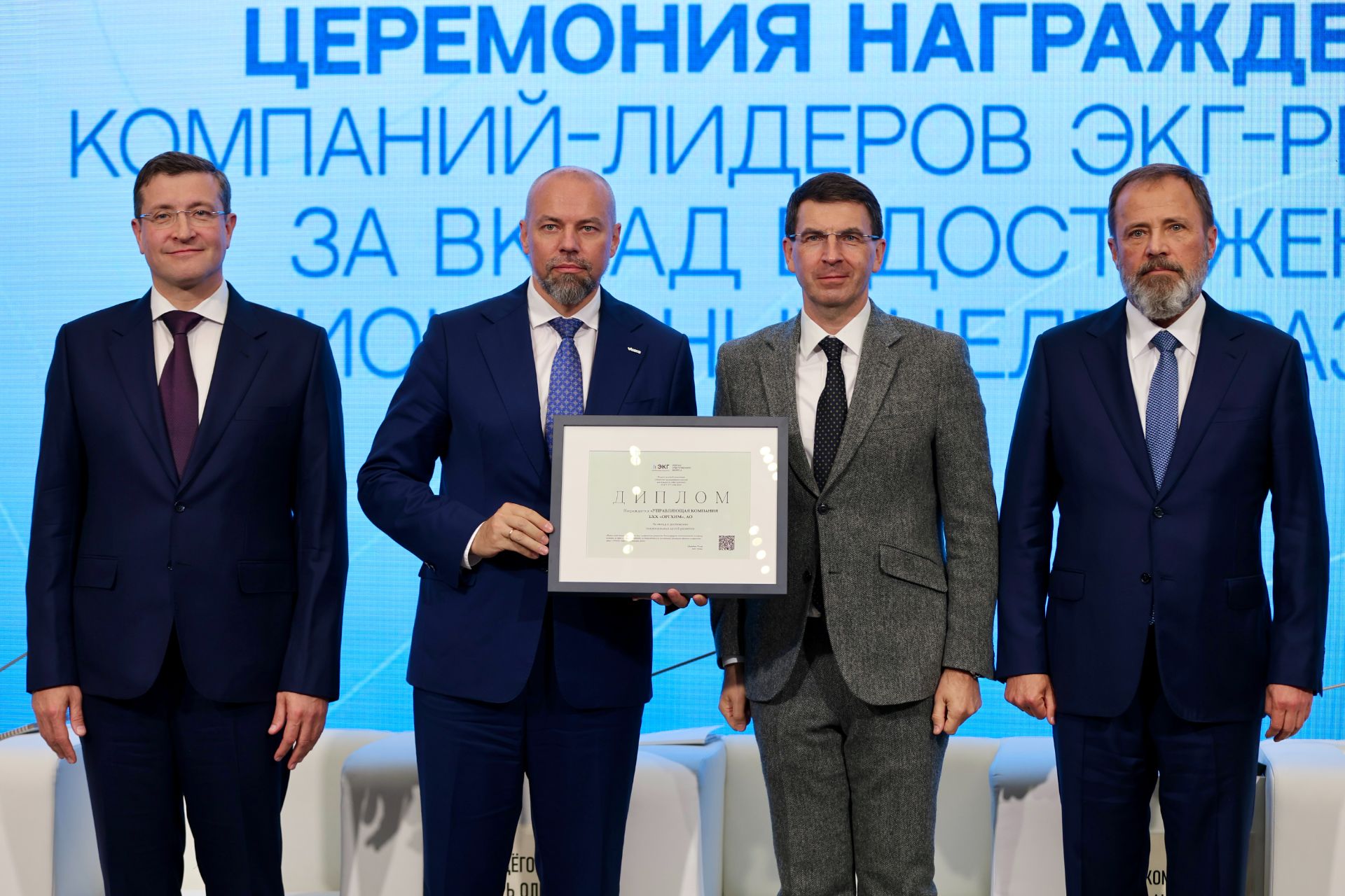 17:49На ЭКГ-форуме ответственного бизнеса «СО.ЗНАНИЕ» в Нижнем Новгороде прошла церемония награждения победителей премии «За вклад в достижение национальных целей развития». Лидерами ЭКГ-рейтинга ПФО стали АО «Управляющая компания БХХ „Оргхим“, ООО „ЛУКОЙЛ-Пермнефтеоргсинтез“, АО „Полиэф“ (входит в ПАО „Сибур холдинг“), АО „Аммоний“ и АО „Промис“.