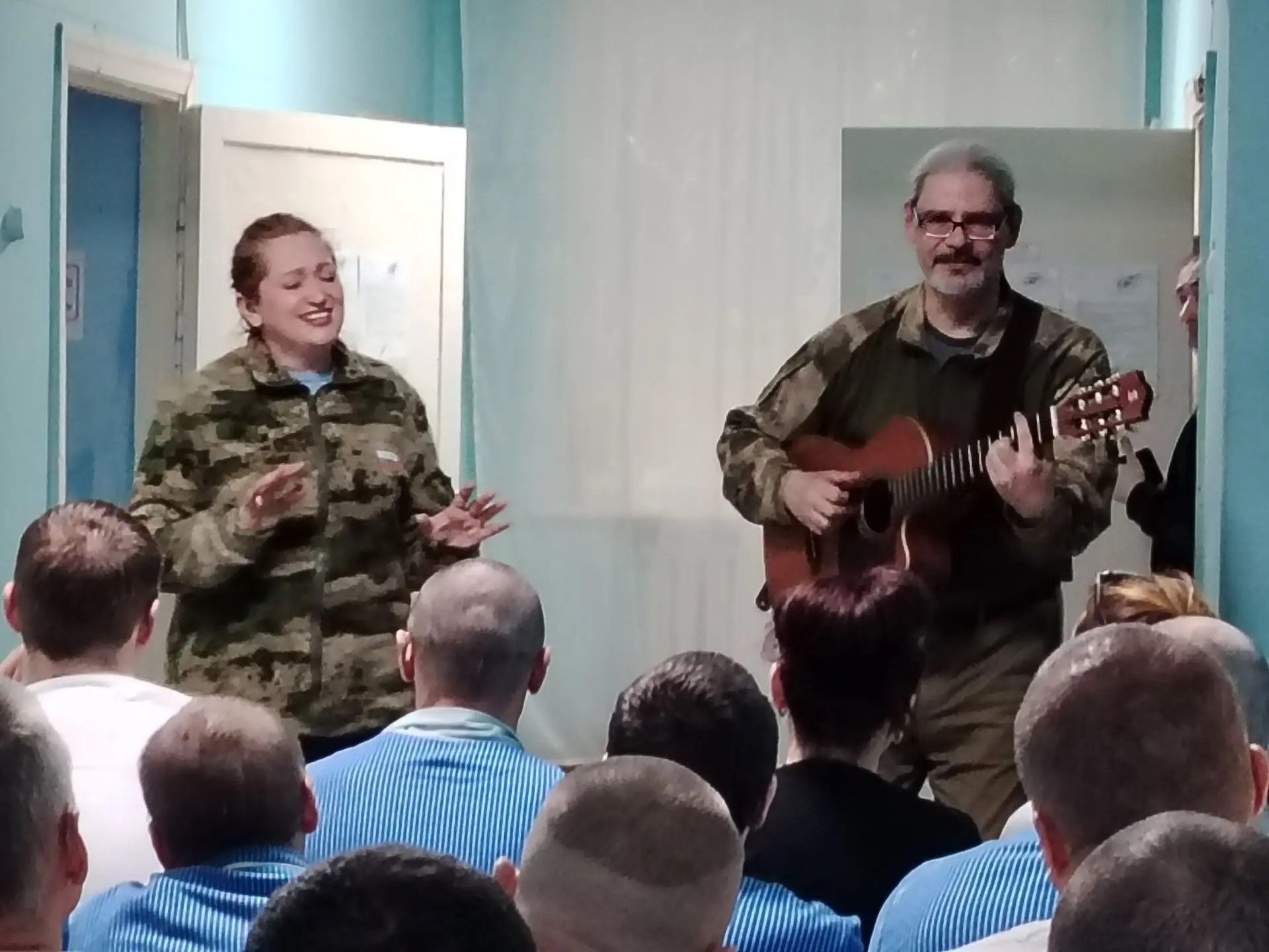 Председатель регионального отделения Союза театральных деятелей России Сергей Кабайло вместе с бардом Олегом Новосельцевым и певицей Еленой Маловой подготовили для бойцов музыкальные выступления, чтобы передать им частичку тепла из родного дома.