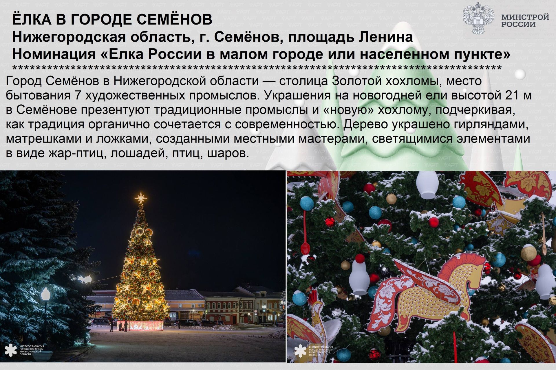 Напомним, новогодние елки в Семенове и Чкаловске установлены в рамках нацпроекта «Туризм и гостеприимство».