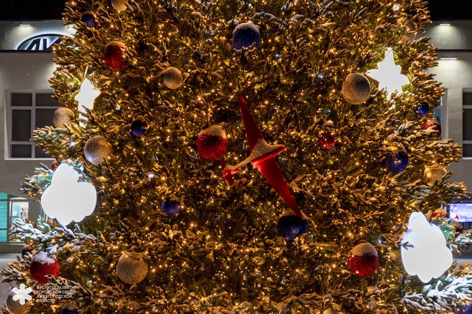 «В Семенове веками развивается хохломская роспись — самый узнаваемый в России промысел, а семёновские края славятся лесами и мастерством работы с деревом. В украшение ели на площади Ленина мы добавили „новую хохлому“, подобную той, которая была презентована год назад на Красной площади в Москве и в самом Семенове. А ещё на ветках ёлки среди украшений можно найти матрёшки, сказочных жар-птиц и деревянные ложки, созданные местными мастерами. Чкаловск — родина легендарного лётчика Валерия Чкалова, поэтому здесь главную новогоднюю елку украшают облака, небо и уникальные игрушки индивидуального изготовления — модели знаменитого самолета АНТ-25, дизайн которых придумали специалисты ИРГСНО. Наши авторские украшения в виде облаков и гирлянды создают впечатление окутанной в звёздное небо ели», — рассказала Дарья Шорина.