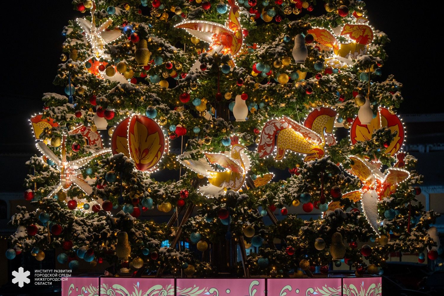 По словам руководителя Института развития городской среды Нижегородской области (ИРГСНО) Дарьи Шориной, в основе идеи украшения городских новогодних ёлок — аутентичность места.