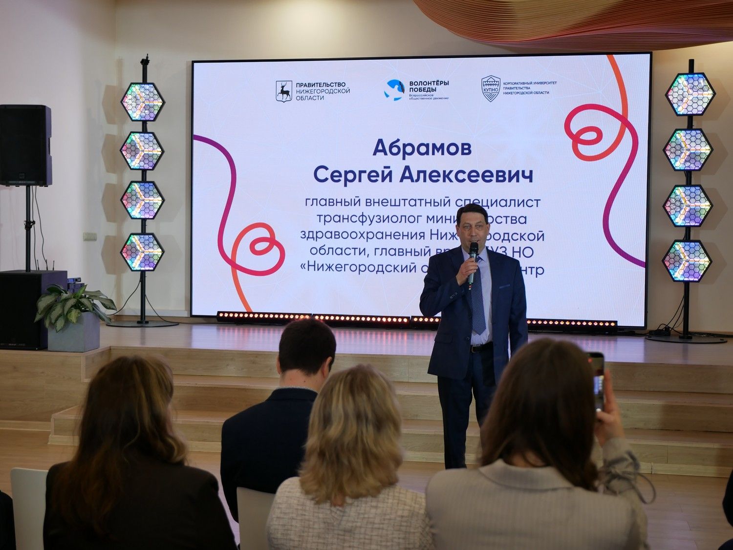 В мероприятии приняли участие заместитель председателя Законодательного собрания Нижегородской области Алексей Антонов, руководитель НРО ВОД «Волонтёры Победы», проректор КУПНО Мария Самоделкина, представители министерства здравоохранения региона, трудовых и учебных коллективов, общественных и волонтерских организаций, добровольческих команд и инициативных групп граждан.