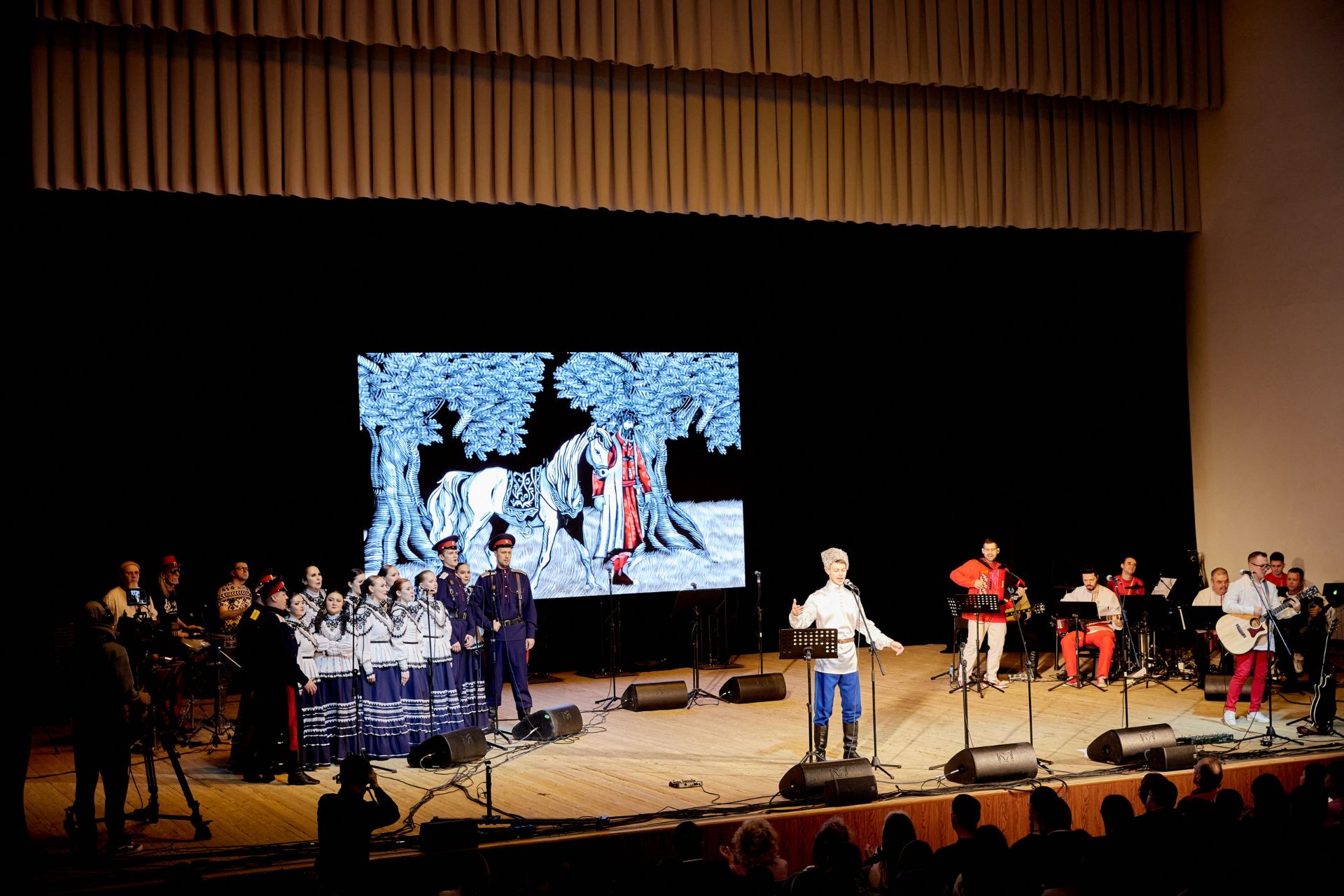 На концерте звучали песни известные, застольные, давно ставшие частью культурного кода русского человека, и новые, созданные современными авторами, но от того не менее атмосферные. Например, композиция «Собирайтесь, други!» в исполнении группы «полДень Победы» записана в стиле рутс-регги (автор текста Василий Проханов, сын известного писателя Александра Проханова), при этом талантливо стилизована под старую казачью. Одна песня альбома написана на стихи поэтессы Ники Батхен, которые посвящены событиям июня 2023 года, но главный герой выведен через образ атамана-бунтаря.