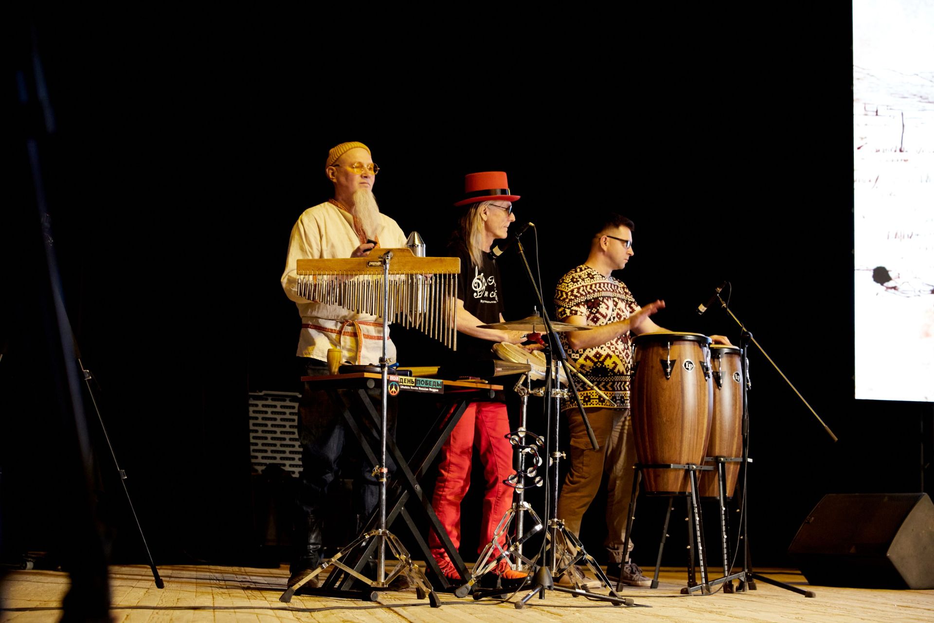 Отдельное внимание организаторы уделили звуко-визуальному сопровождению концерта. На большом экране сменяли друг друга анимированные картины, иллюстрирующие каждое выступление артистов. За создание визуальных эффектов отвечала Кристина Тарасова, контент-менеджер группы «Лампасы». Появился и «ведущий», сценарий для которого написал московский поэт и литературный критик Олег Демидов.