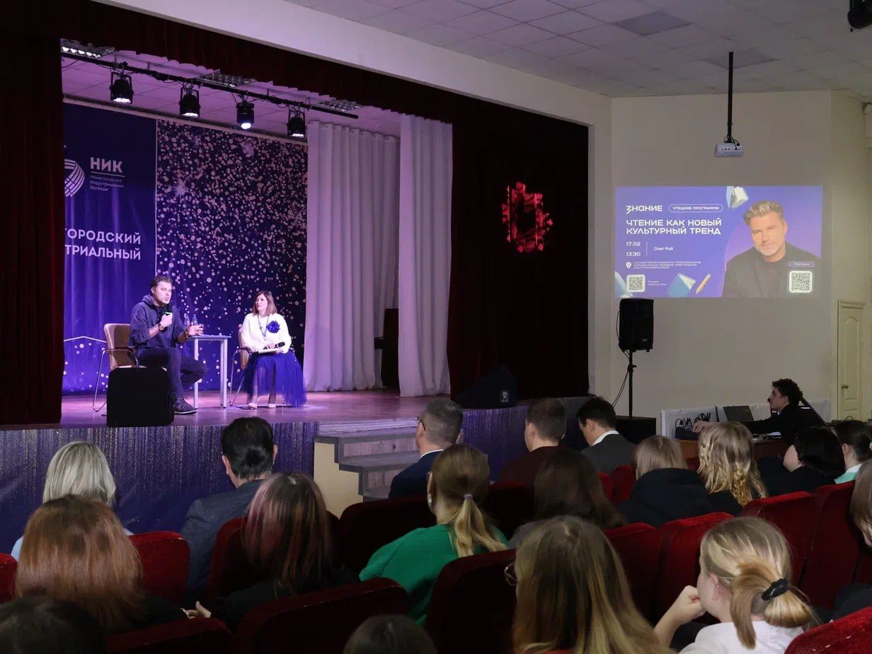 12:41Известный российский писатель Олег Рой встретился со студентами Нижегородской области в рамках масштабного просветительского проекта «Чтецкие программы», реализуемого Российским обществом «Знание». Первое мероприятие прошло в Нижегородском губернском колледже, а на следующий день состоялась беседа со студентами Нижегородского индустриального колледжа. Главной темой диалога стал поиск родственной души в литературе и преодоление внутренних барьеров на пути к знаниям и самосовершенствованию.