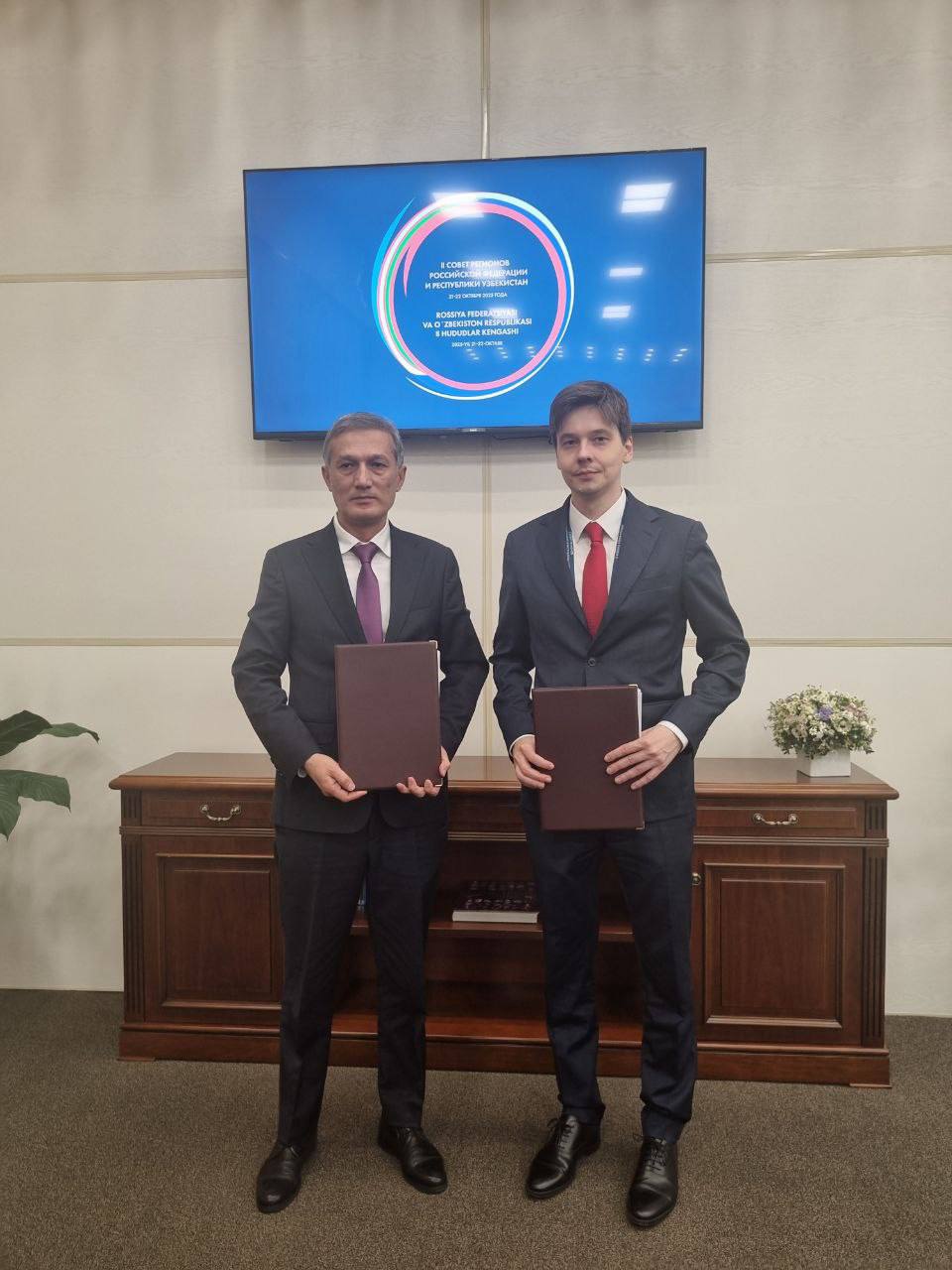 Церемония обмена двусторонними договорными документами состоялась в присутствии первого заместителя председателя Правительства Российской Федерации Дениса Мантурова и заместителя премьер-министра Республики Узбекистан Жамшида Ходжаева.
