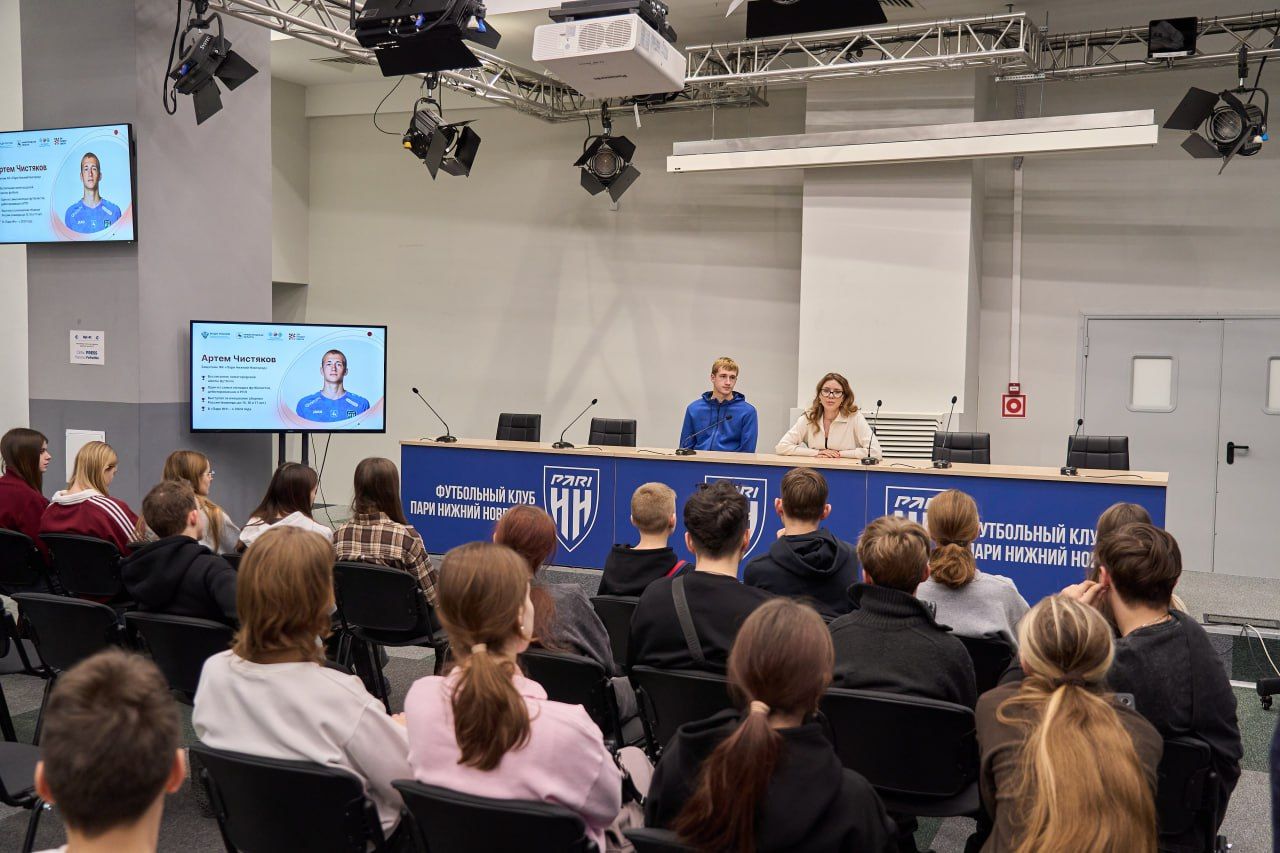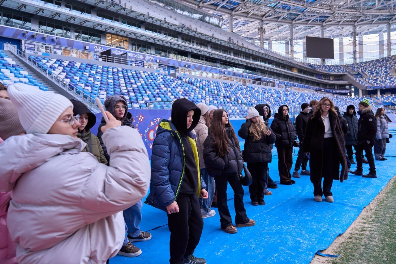 Большое впечатление на гостей произвел нижегородский стадион. Им показали футбольное поле, где проходили матчи чемпионата мира в 2018 году, раздевалку, в которой готовился к игре легендарный Лионель Месси, и другие помещения. После экскурсии состоялся открытый диалог с защитником футбольного клуба «Пари Нижний Новгород» Артемом Чистяковым. Ребята спрашивали его о карьере, увлечениях и секретах успеха. Встреча завершилась автограф-сессией и совместной фотографией.