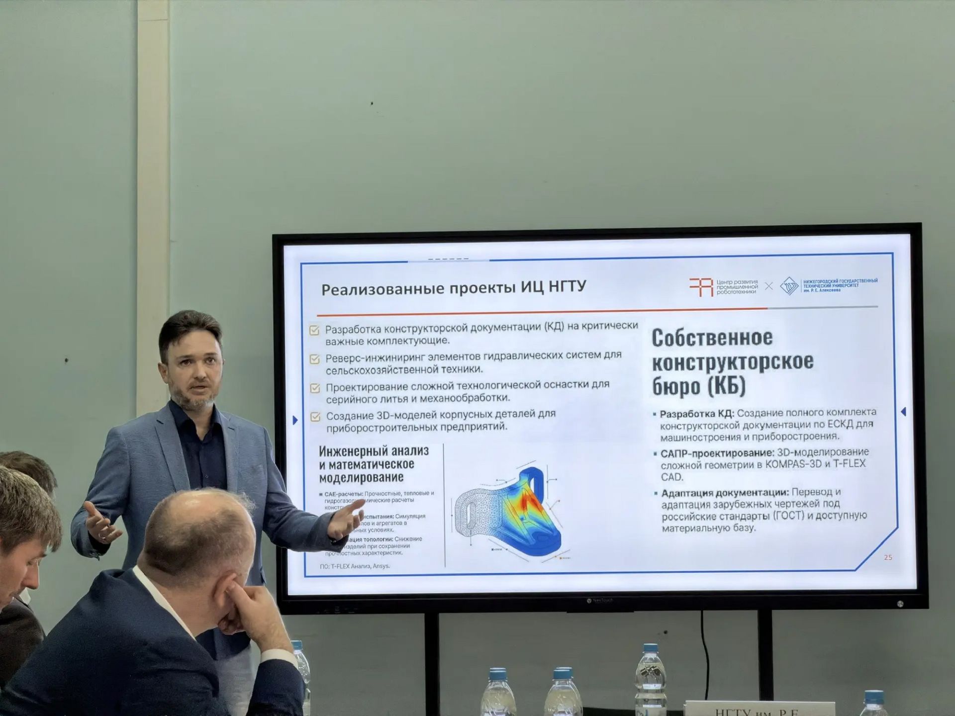Ключевым событием программы стала презентация концепции и направлений деятельности Центра развития промышленной робототехники региона и Инжинирингового центра НГТУ. Участники ознакомились с практическими разработками и текущими проектами, направленными на цифровую трансформацию производственных процессов и роботизацию отечественного станкостроения.