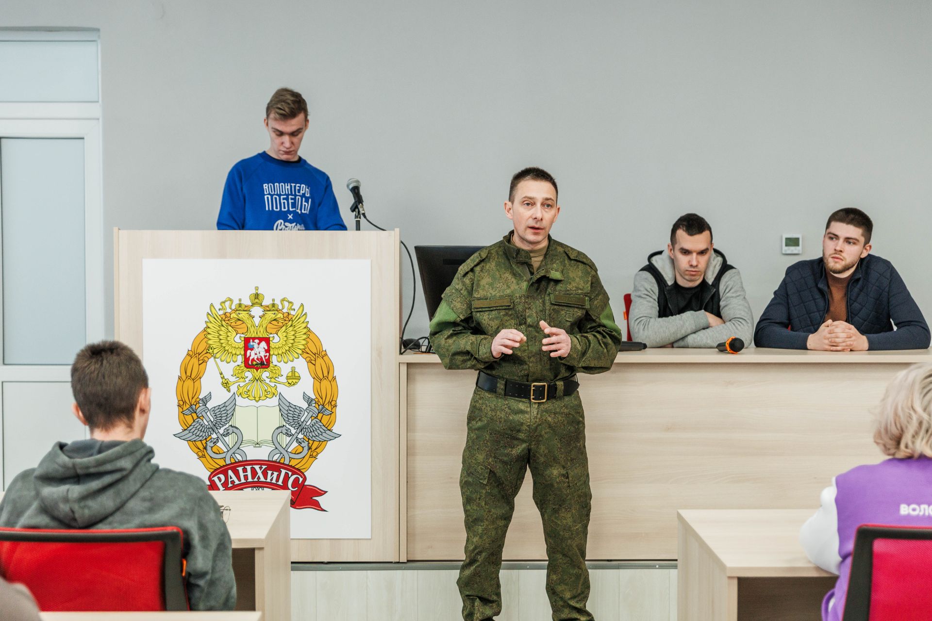 13:34В канун Дня защитника Отечества в Нижегородском институте управления Президентской академии состоялась встреча студентов с ветеранами специальной военной операции, участниками программы «Герои. Нижегородская область» Владимиром Петруховым и Никитой Овчинниковым.