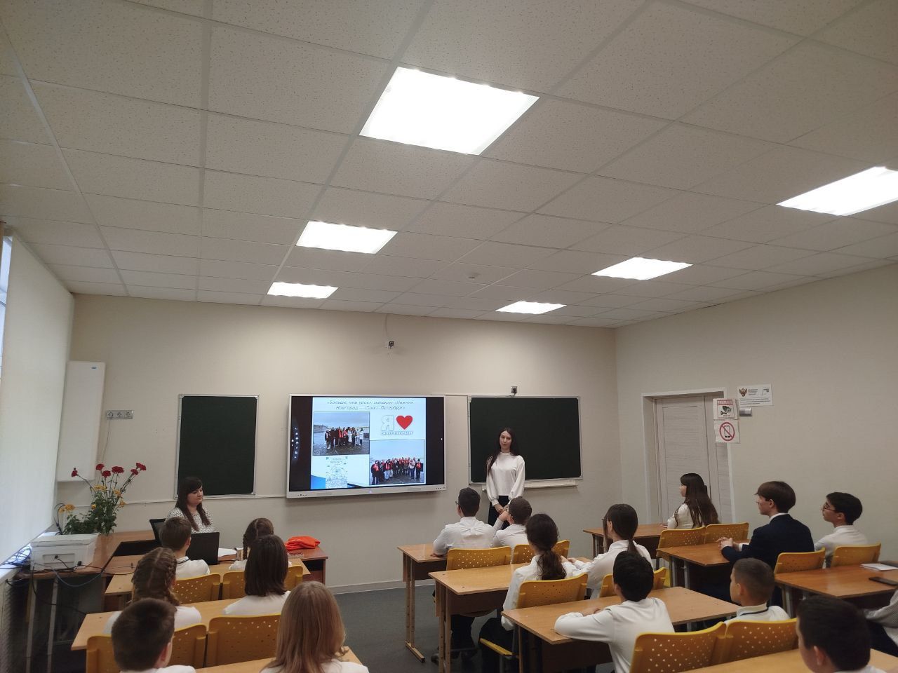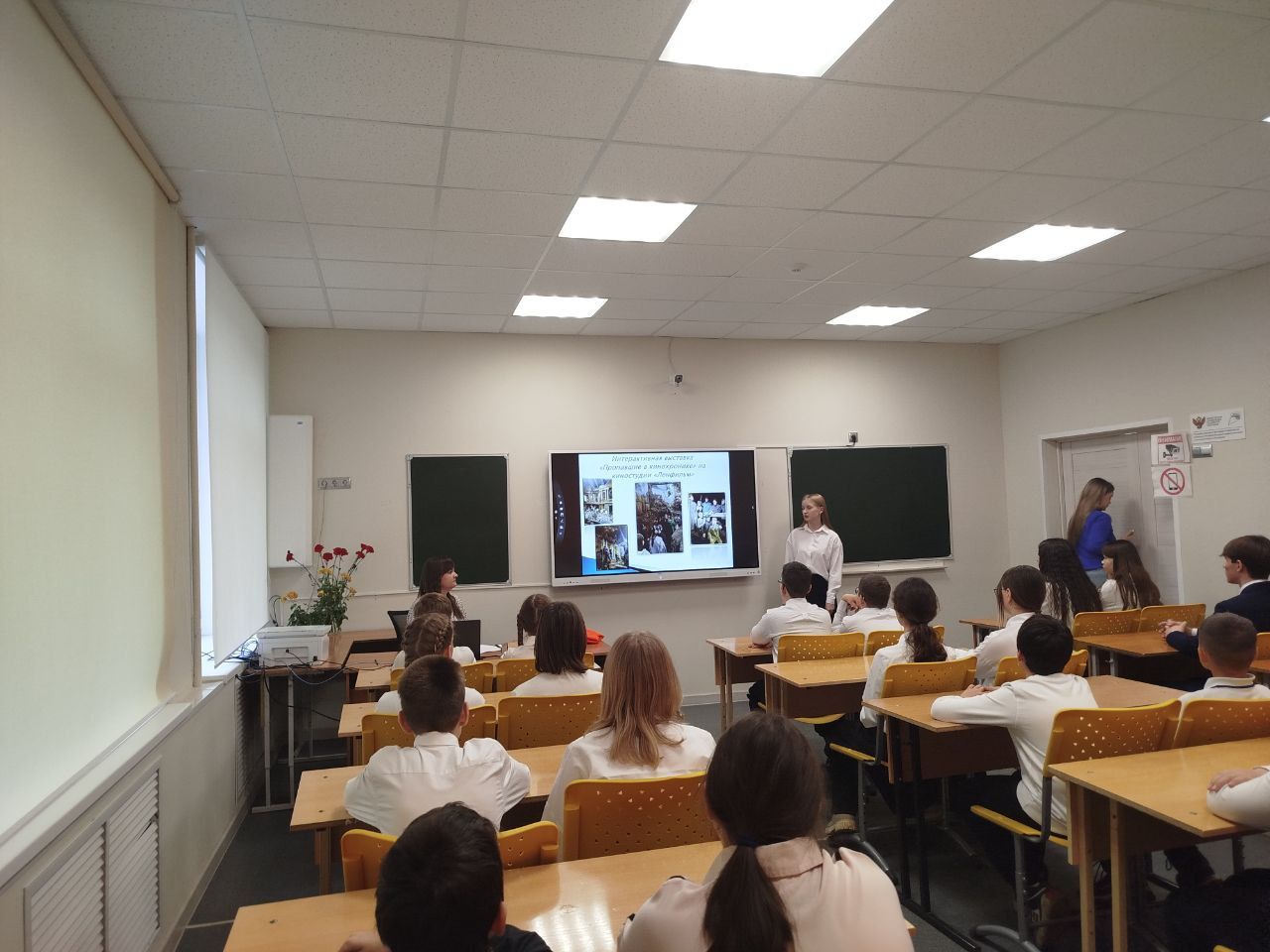Десятиклассники решили поделиться своими впечатлениями с обучающимися 6 «Г» класса. Для них был подготовлен рассказ и презентация, посвящённые исторической связи между Шатковским округом и блокадным Ленинградом в период Великой Отечественной войны. Участники путешествия также продемонстрировали личные фото и видео из поездки.