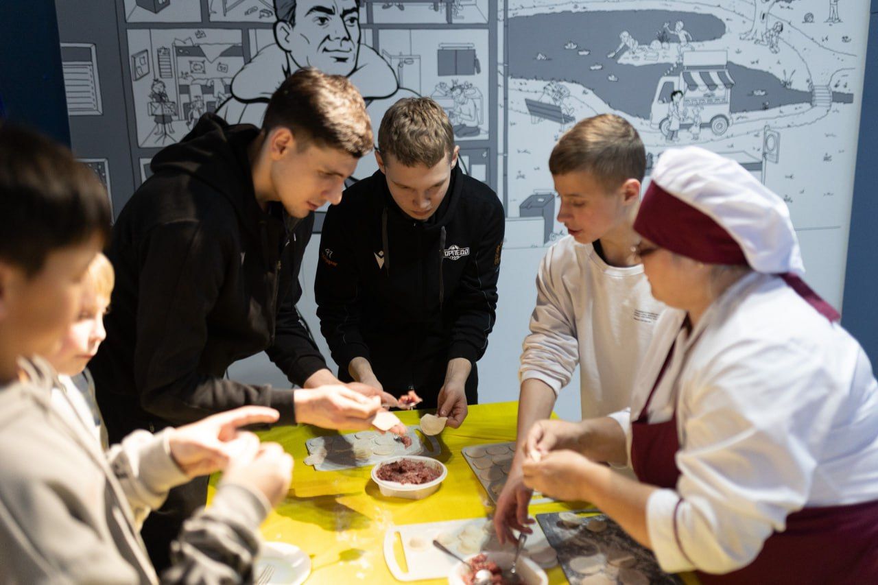 Гости вместе с детьми присоединились к творческим мастер-классам. Ребята могли попробовать себя в армреслинге и игре на барабанной установке, также каждый желающий мог присоединиться к процессу лепки пельменей.