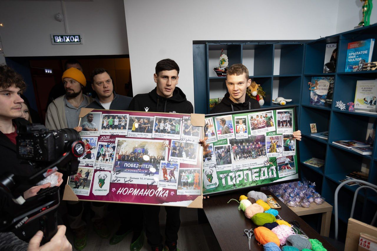 Особым подарком для детей стал визит нижегородских спортсменов. Представители хоккейной команды «Торпедо» подарили центру настольный хоккей, представители футбольного клуба «Пари НН» — напольный футбол, а игроки нижегородского профессионального клуба по мини-футболу «Торпедо» раздавали постеры с автографами.