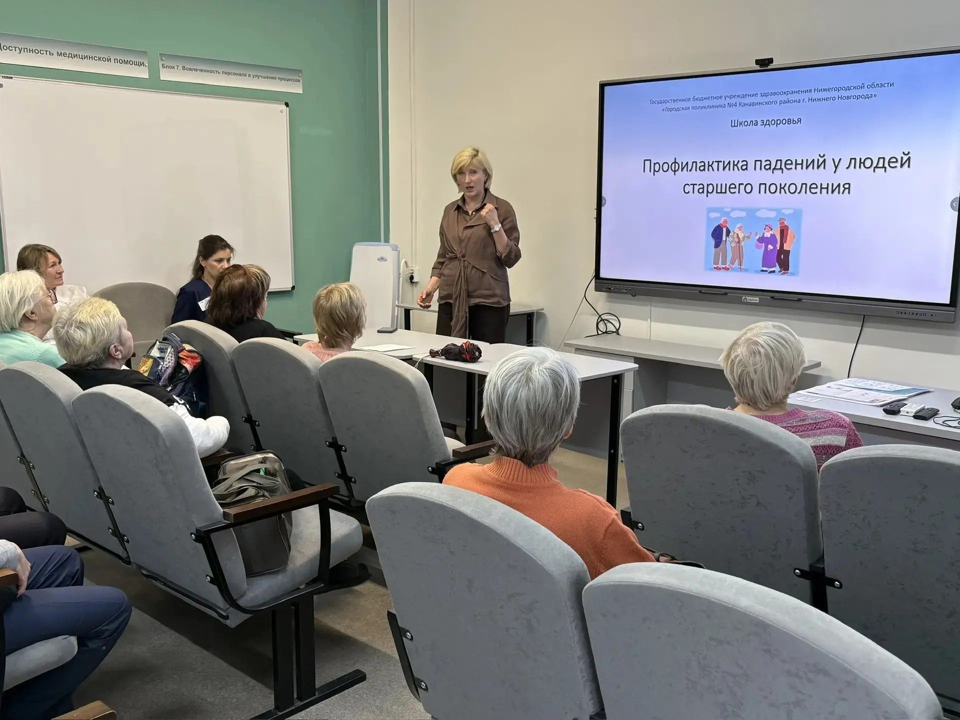 Главный врач городской поликлиники № 4 Нижнего Новгорода Инна Пудова встретилась с пациентами и их родственниками, чтобы обсудить проблемы, с которыми сталкиваются люди старшего возраста.