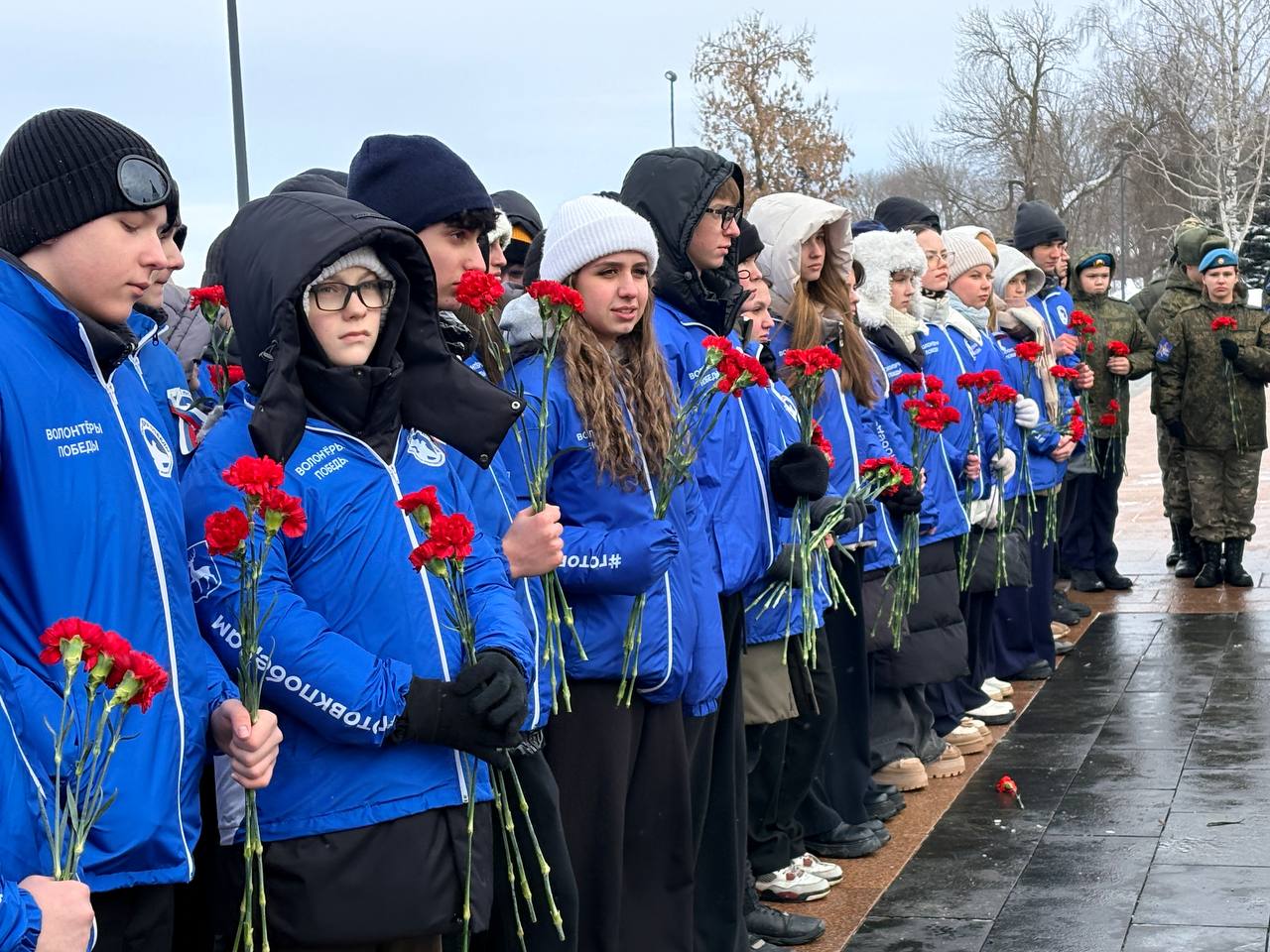 Собравшиеся почтили память защитников Отечества минутой молчания и возложили цветы к Вечному огню.