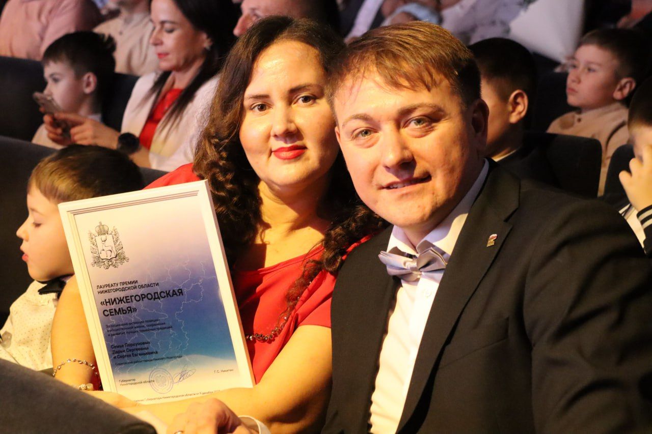 Еще одни обладателей премии — супруги и многодетные родители Дарья и Сергей Порхуновы, жители Сормовского района Нижнего Новгорода.