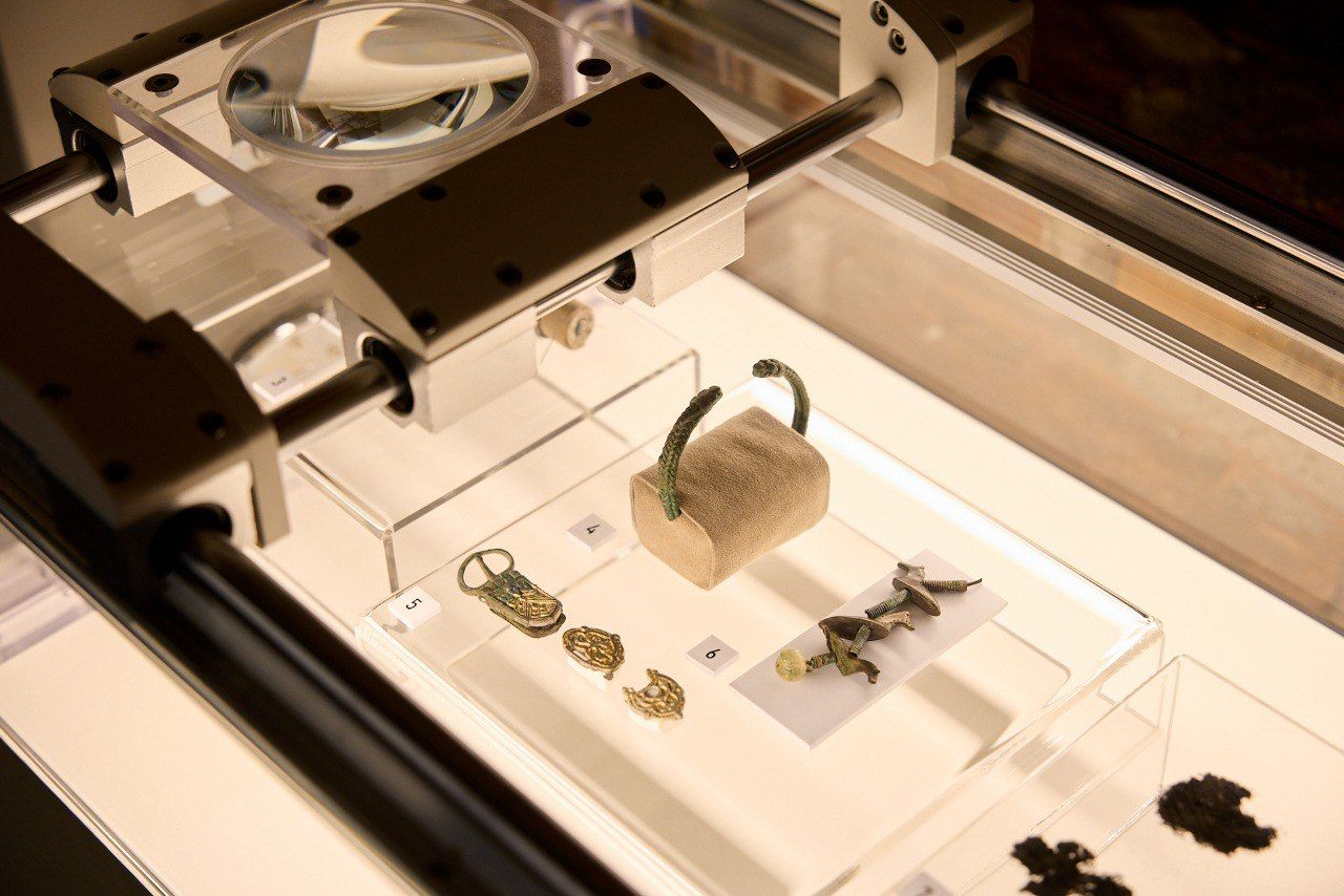 «Научная работа над находками начинается непосредственно в полевых условиях. Как только предмет обнаружен, еще до его извлечения из земли, начинается его изучение. Это крайне важно для понимания контекста, особенно в комплексе с другими артефактами из погребений. Хотя музей и академический институт — это разные организации, именно наше тесное взаимодействие позволяет добиваться таких результатов, которые вы видите на выставке. Обычно путь находки от раскопа до музейной витрины занимает пять-шесть лет, а у нас этот процесс занимает всего полгода. Это стало возможным, потому что научная значимость каждого предмета определяется и документируется сразу же. Нередко случается, что находка, сделанная днем, вечером уже анализируется: мы осмысляем ее, делаем выводы и оперативно фиксируем все данные. Вся эта информация затем ложится в основу научного отчета и описания экспонатов выставки», — отметил генеральный директор музея-заповедника Юрий Филиппов.