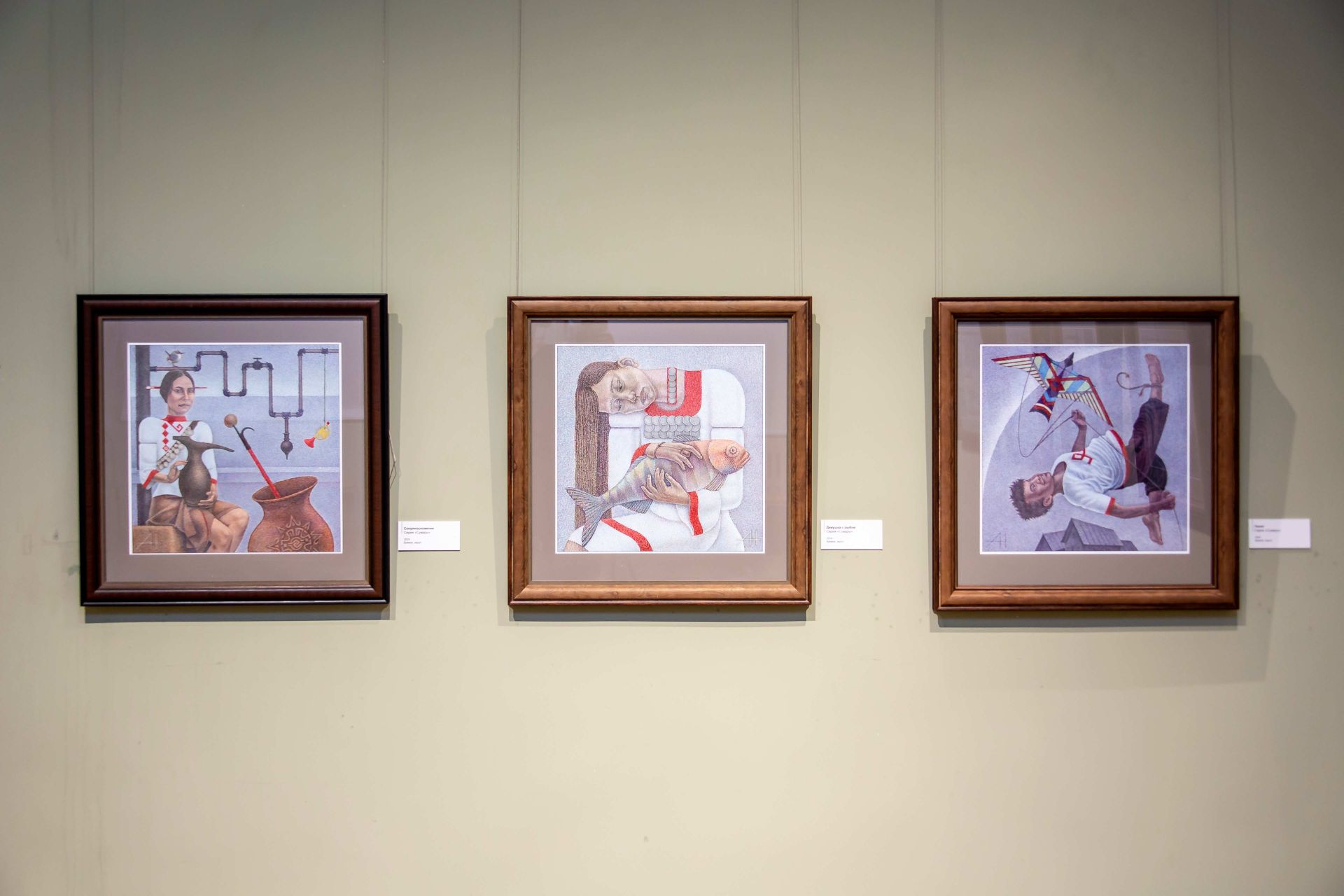 Диапазон тем, встречающихся в творчестве Александра Насекина, чрезвычайно широк: это и библейские мотивы, и мифология, и символизм, и многое другое. В полотнах мастер через художественные образы осмысляет многослойность исторической памяти и идентичности. Поэтому особое место в экспозиции заняла серия «Сувары» из 10 работ, в которой Александр Насекин обращается к теме национальных корней и диалогу с чувашской культурой. Важно отметить, что эта серия подготовлена специально для выставки в Нижнем Новгороде и экспонируется впервые, а сам выставочный проект нижегородский музей приурочил к Году единства народов России.