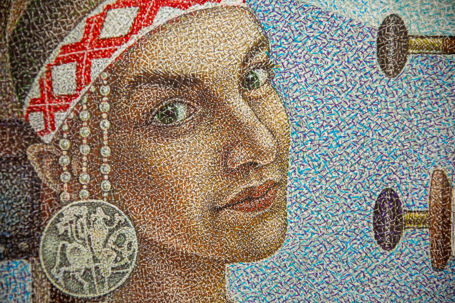 Работы Александра Насекина узнаваемы не только своим глубоким философским содержанием и оригинальным стилем. Произведения словно сотканы из сотен тысяч тончайших разнонаправленных штрихов изографа, формирующих единую плотную поверхность сложных композиционных историй.
