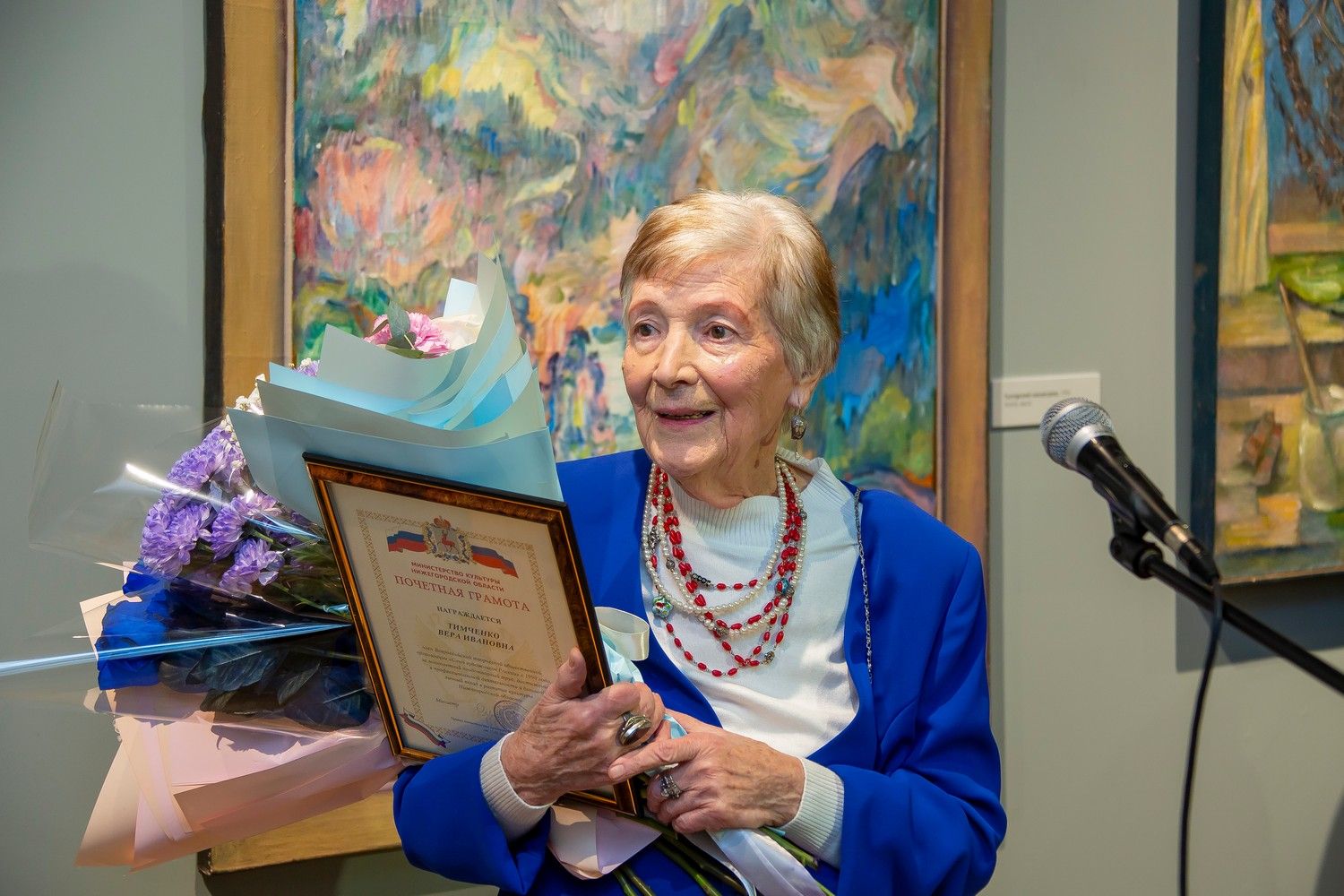 «Для меня особое значение имеет название выставки — «Судьбой намеченный маршрут». Если мы посмотрим на работы Веры Ивановны и вспомним её биографию, станет ясно, насколько оно содержательно и продумано. Глядя на картины, мы убеждаемся, что ее творческий путь разнообразен и интересен. Эта ретроспектива — не просто собрание картин, это приглашение пройти вместе с художником по ее дороге, увидеть мир ее глазами, прикоснуться к душе человека, который всю жизнь оставался верен творчеству. Ее творческий путь честный и светлый и наверняка найдет отклик в наших сердцах», — отметила заместитель министра культуры Нижегородской области Ирина Вагина.