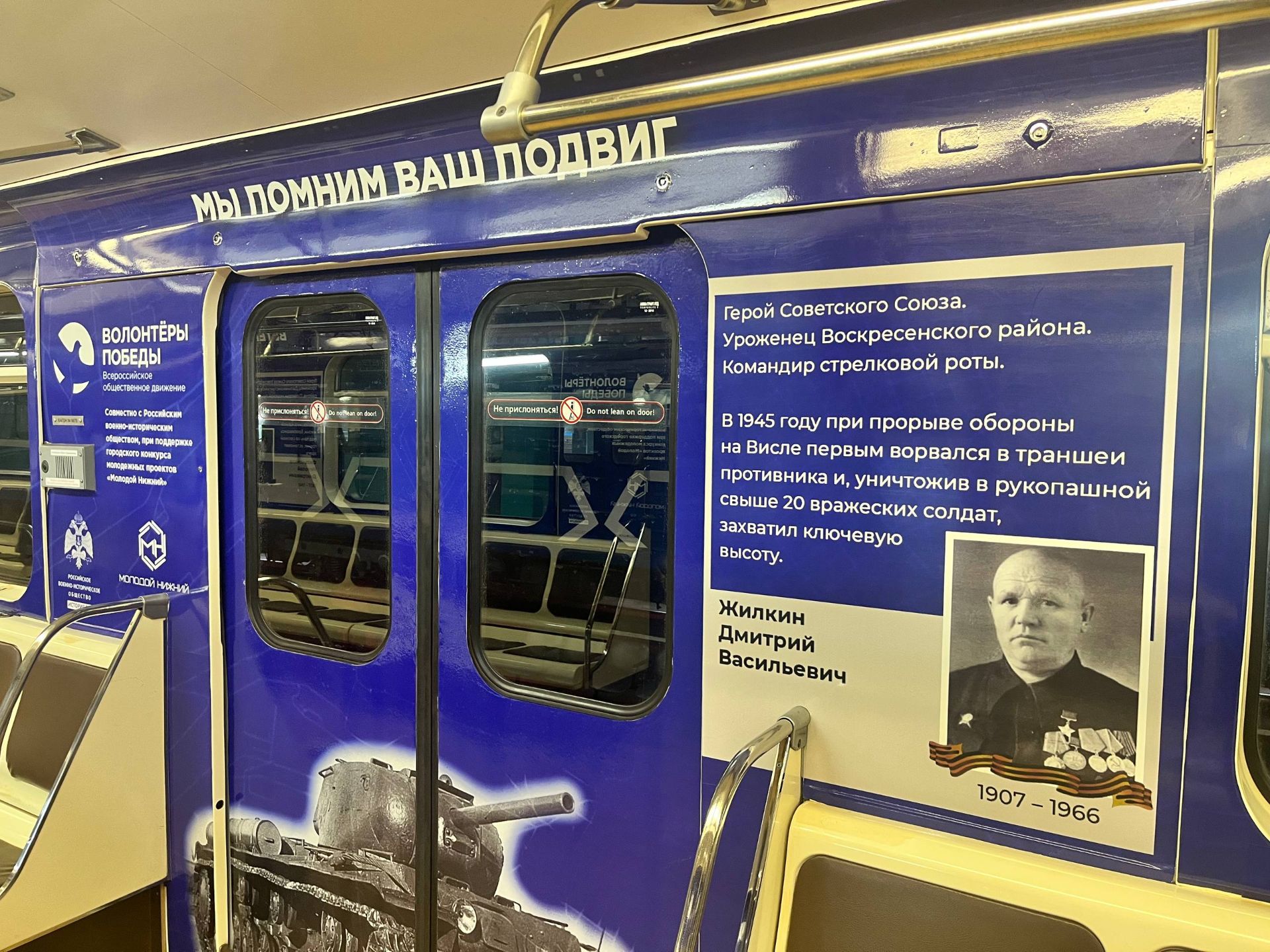 Инициатором и организатором проекта выступает региональное отделение движения «Волонтёры Победы» при поддержке Российского военно-исторического общества и грантового конкурса «Молодой Нижний». Это уже восьмой «Вагон Победы» в нижегородском метро. Пассажиры метрополитена смогут ознакомиться с историями подвигов своих земляков.