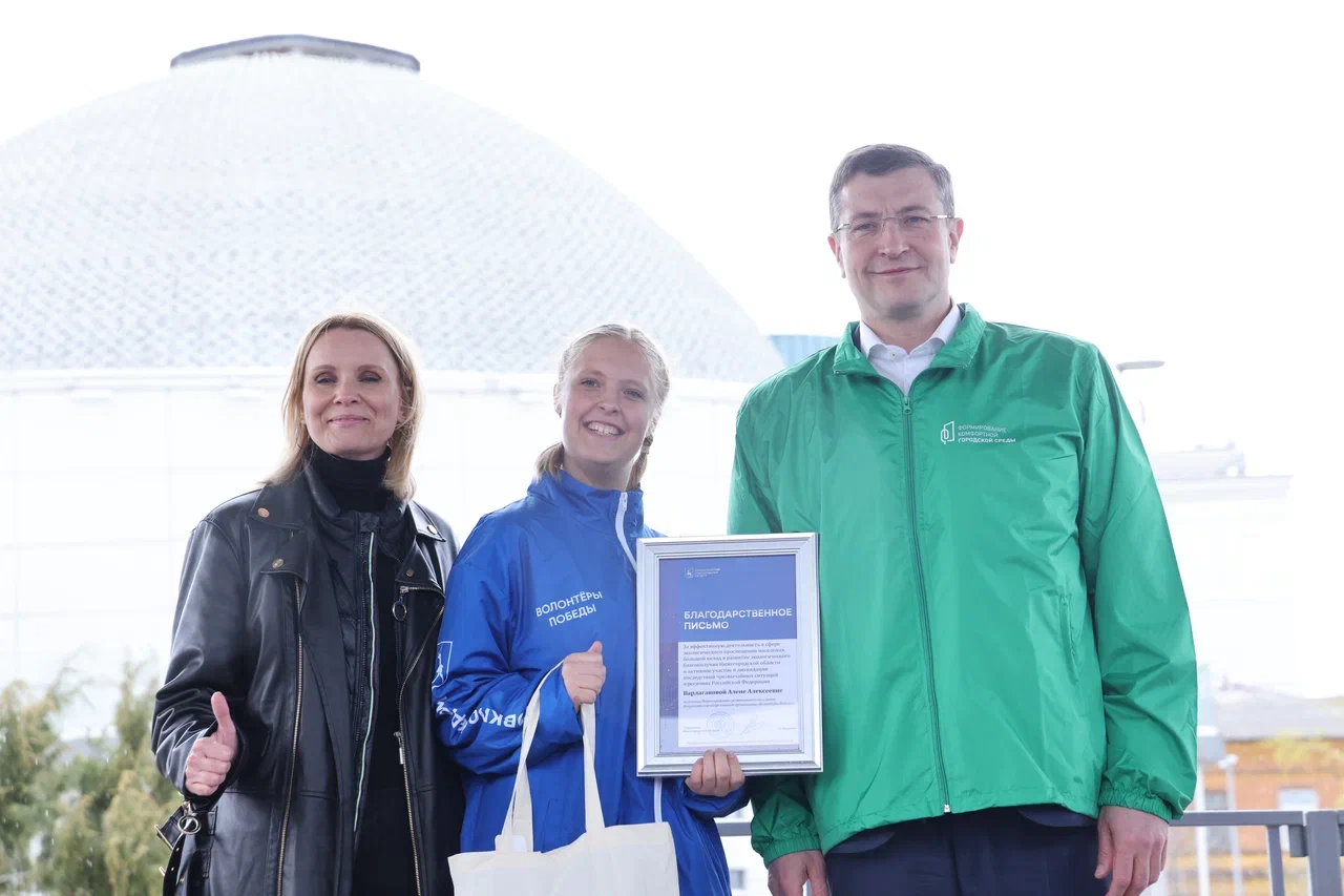 Губернатор Нижегородской области, секретарь нижегородского регионального отделения партии «Единая Россия» Глеб Никитин вручил благодарственные письма правительства Нижегородской области, а также памятные подарки волонтерам, которые внесли значительный вклад в экологическое благополучие региона и других территорий России.