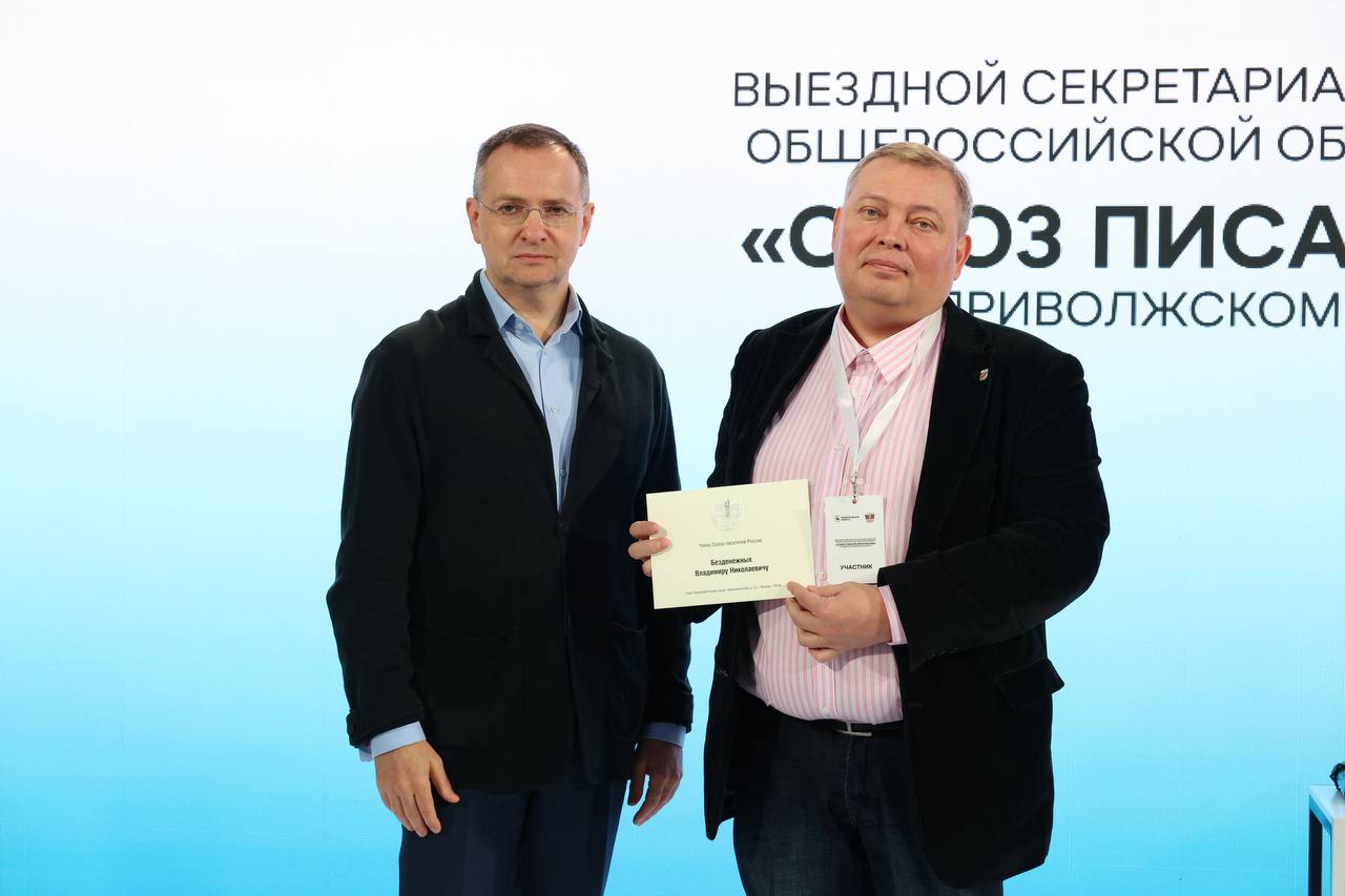 В ходе работы выездного заседания были вручены членские билеты Союза писателей России нового образца. Их получили члены правления регионального отделения Союза писателей России в Нижнем Новгороде - Олег Рябов, Дмитрий Терентьев, Владимир Безденежных, Марина Кулакова и Алина Гребешкова. Также членские билеты были вручены представителям правления региональных отделений Союза писателей России в Республике Марий Эл, Республике Татарстан и Республике Мордовия, а также в Ульяновской, Оренбургской, Пензенской областях и Пермском крае. Всего членские билеты нового образца получили 12 человек.