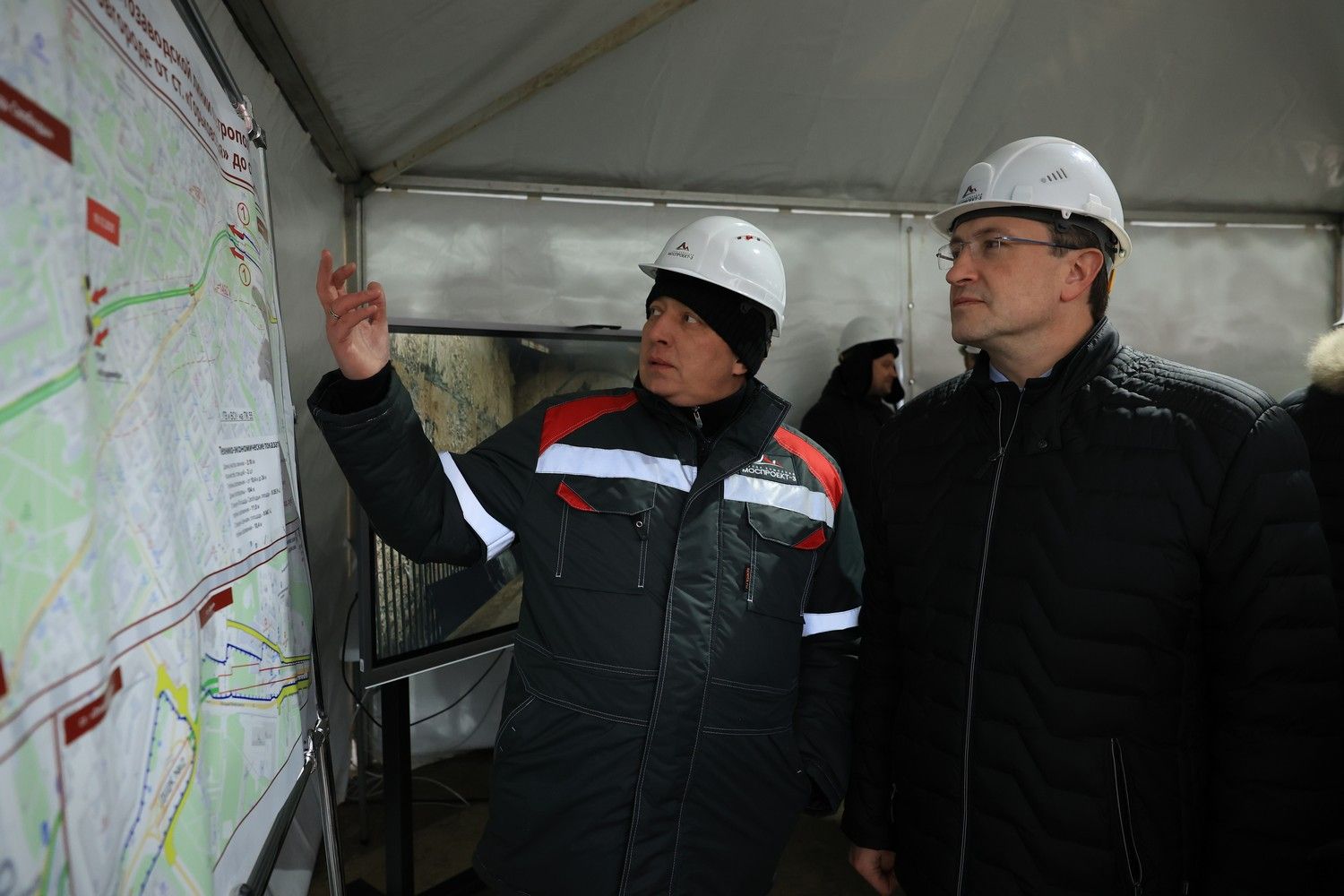 На торжественной церемонии выхода в демонтажную камеру механизированного комплекса «Владимир» приняли участие губернатор Нижегородской области Глеб Никитин, руководство группы компаний «Моспроект-3».