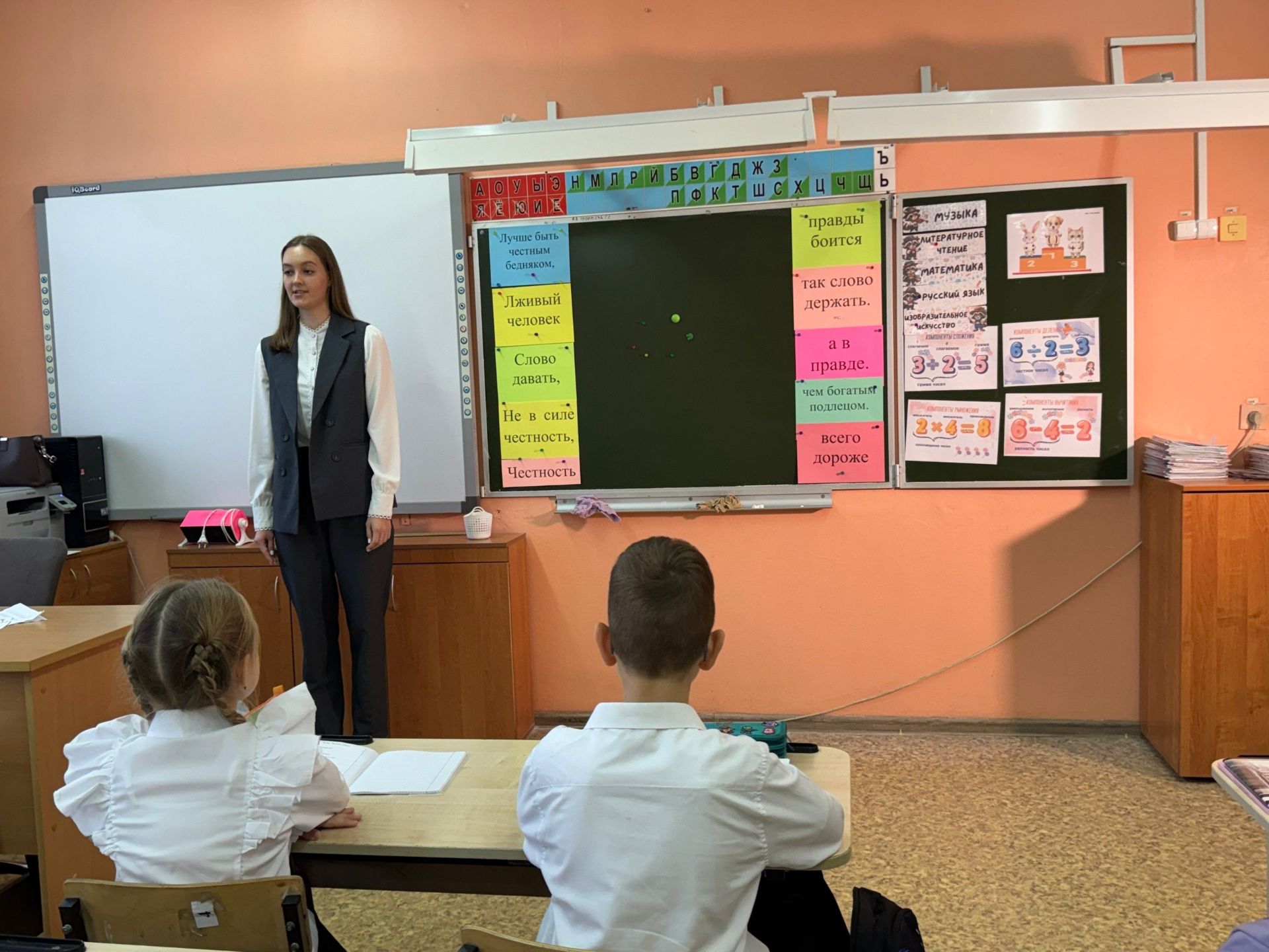Учащиеся начальных классов побывали на уроке музыки, посвященном анализу и исполнению песни «Честное слово» (слова и музыка Наталии Осошник). Дети разучили песню и поговорили о том, насколько важно быть честным и выполнять данные обещания.