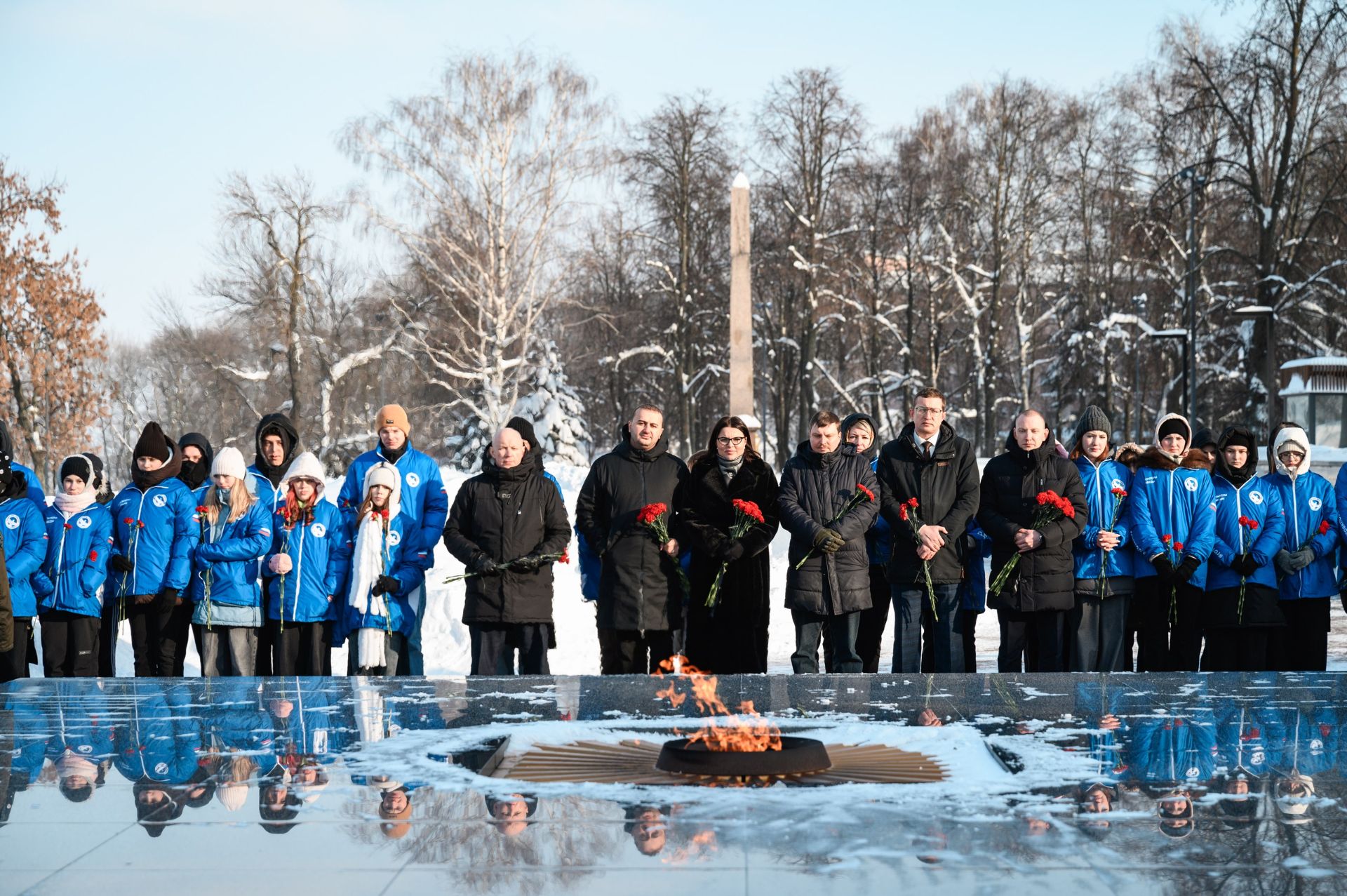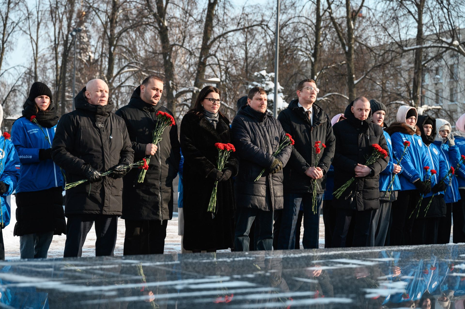 В Нижегородском кремле прошла торжественная церемония возложения цветов к Вечному огню в память о павших защитниках Сталинграда. К волонтёрам Победы присоединились активисты регионального отделения Российского движения детей и молодежи «Движение первых», Центра военно-патриотического воспитания Нижнего Новгорода и участники образовательной программы «Герои. Нижегородская область» Роман Костюничев, Роман Зыков и Артем Сазонов.