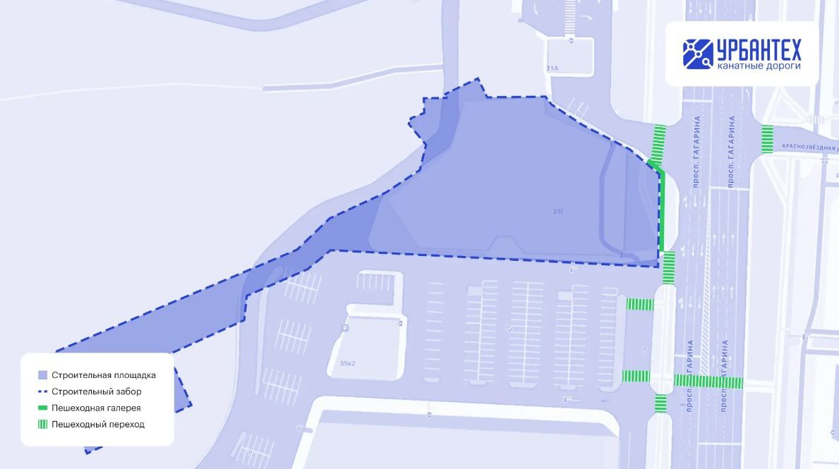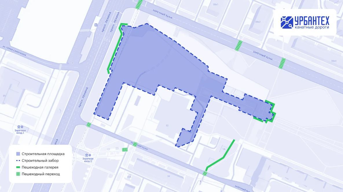 Напомним, проектом предусмотрено строительство трех станций канатной дороги: «Заречная», «Тихая гавань» и «Проспект Гагарина», а также линейных опор и временных строительных площадок. Для каждой территории разработаны схемы размещения строительной техники с учетом текущей транспортной ситуации и пешеходных потоков.